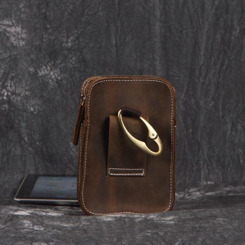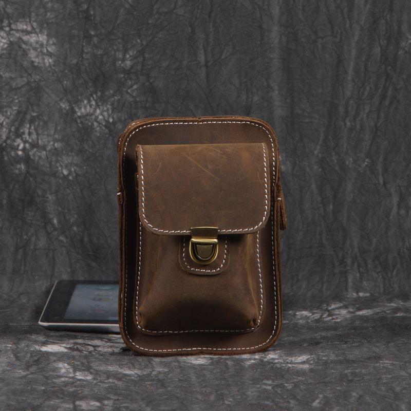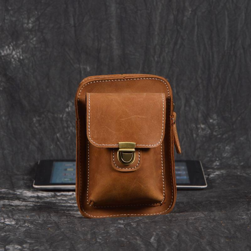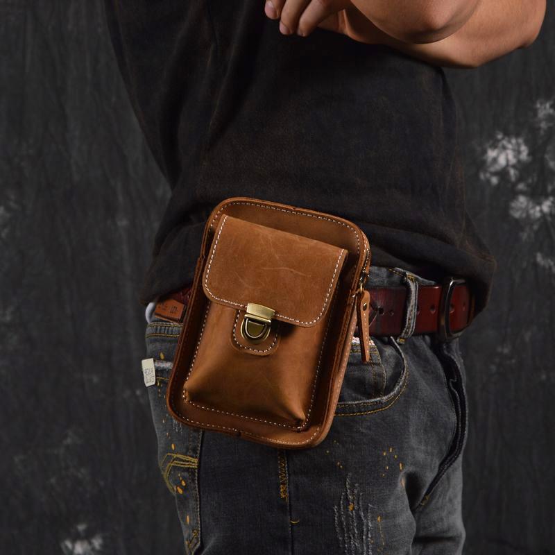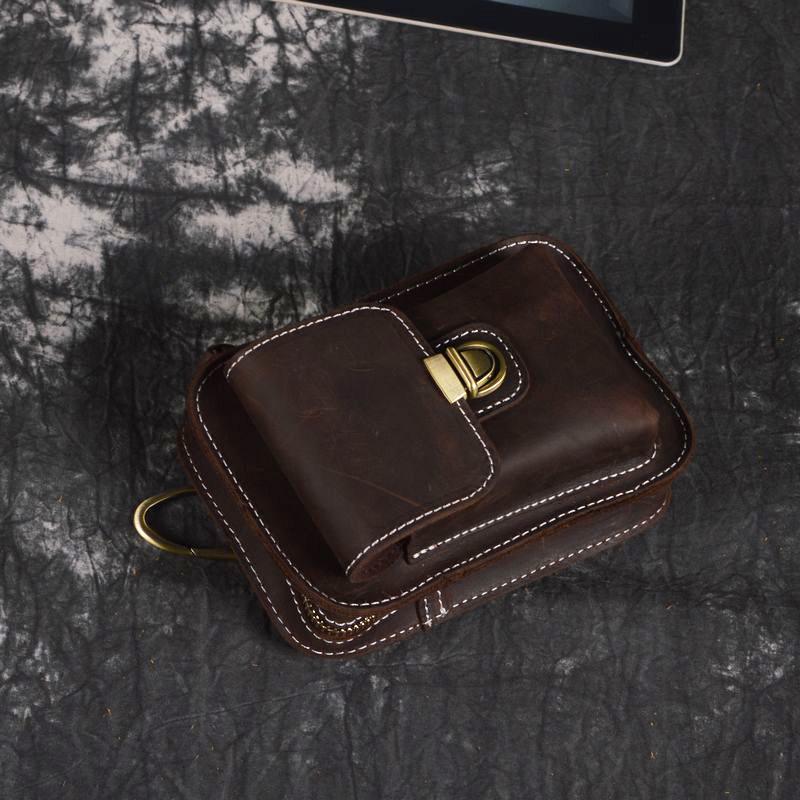 Design: Handmade Leather Mens Small Waist Bag Cigarette Cases Hip Pack Belt Bag Fanny Pack Bumbag for Men