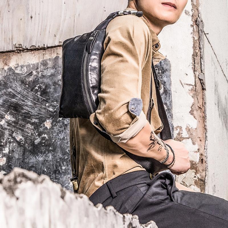 Style: Handmade Leather Mens Waist Bag Hip Pack Belt Bag Fanny Pack Bumbag for Men