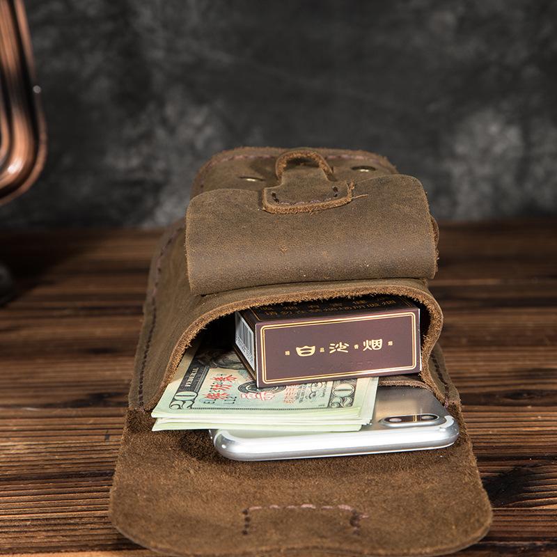Design: Vintage Black Leather Men's Belt Pouch Cell Phone Holster Belt Bags For MenOverview: