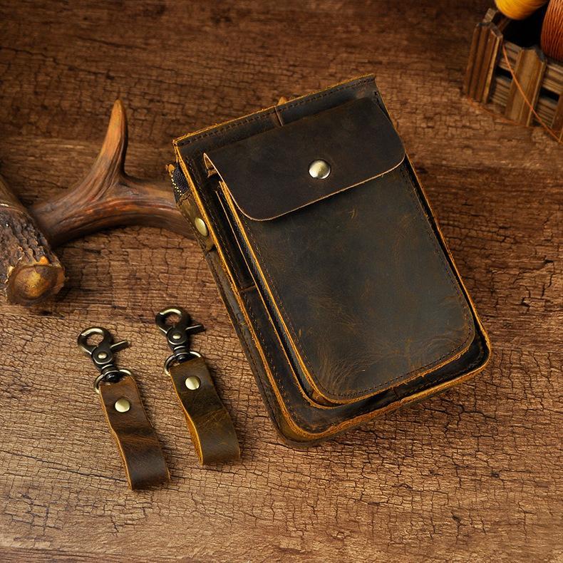 Leather Belt Pouch for Men Waist Bags Cell Phone Holsters BELT BAG Shoulder Bags For Men
