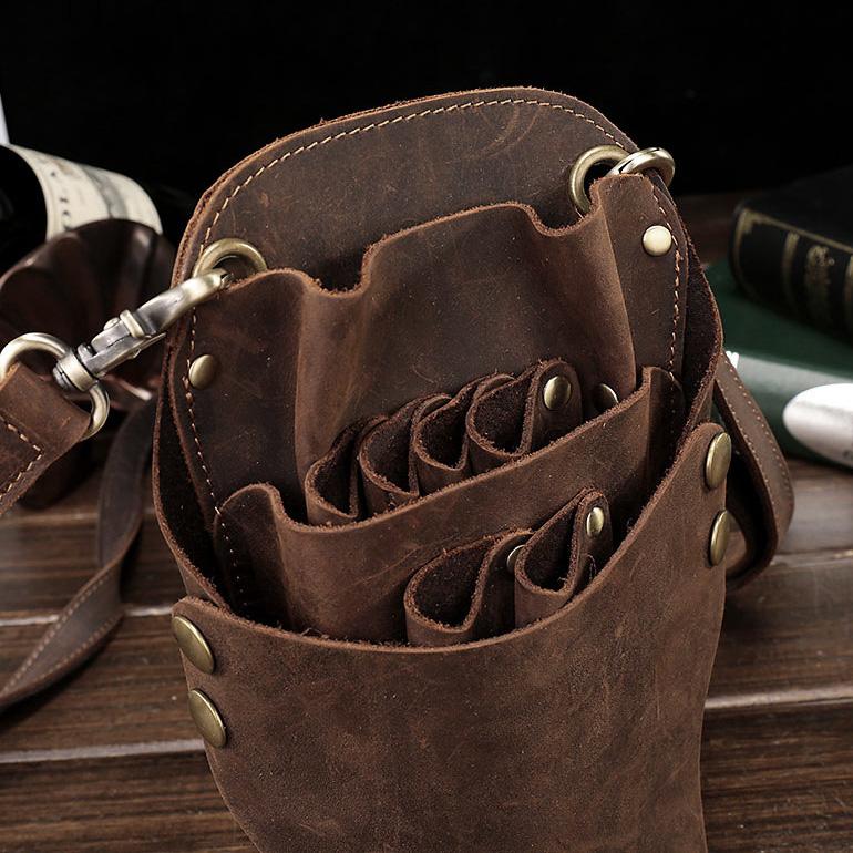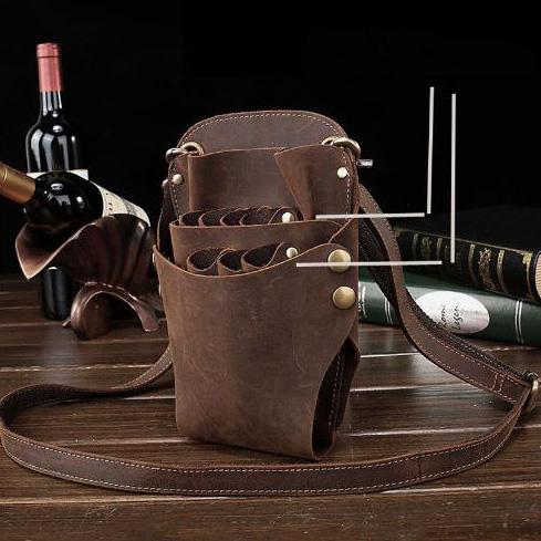 Style: Leather Belt Pouch Men Hairstylist Tool barber pouch scissor case