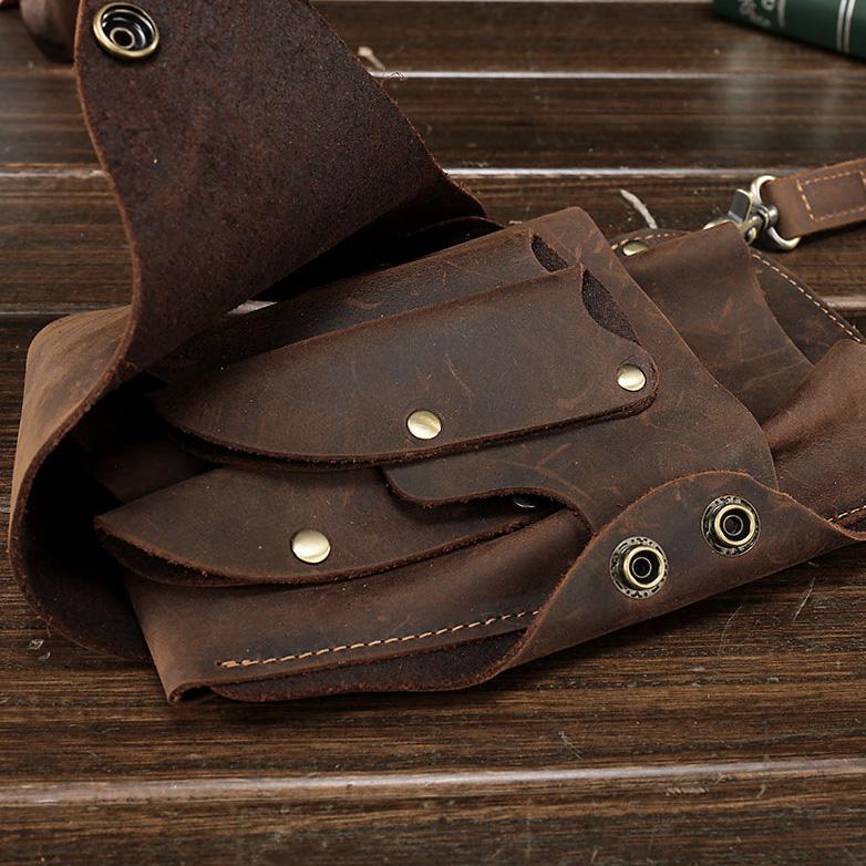 Leather Belt Pouch Men Hairstylist Tool barber pouch scissor case