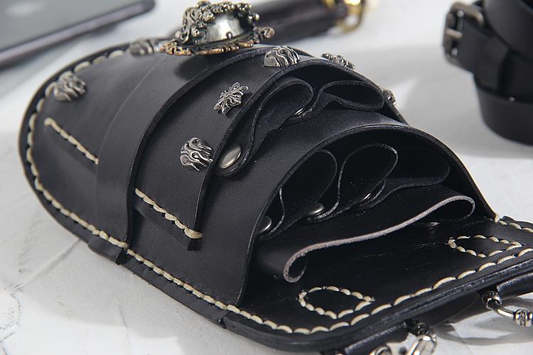 Design: Leather Belt Pouch Mens Small Cases Waist Bag Hip Pack Belt Bag Black Scissors Bag for Men