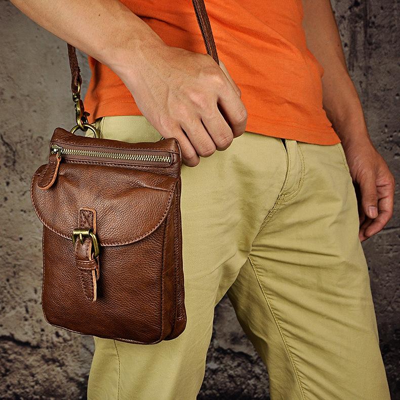 Style: Leather Belt Pouch Mens Waist Bag Shoulder Bag for Men
