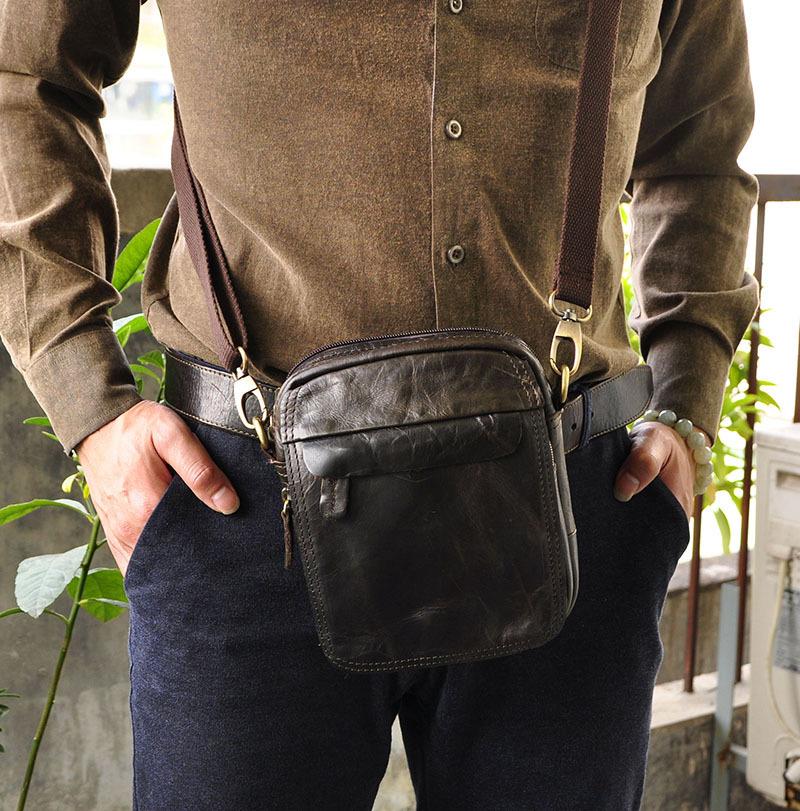 Style: Leather Belt Pouch Mens Waist Bag Shoulder Bag for Men