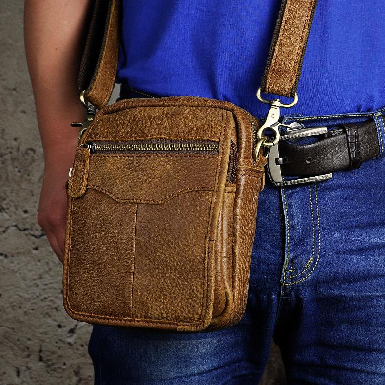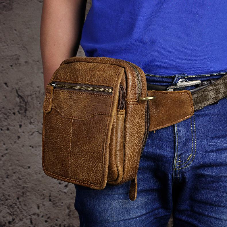 Style: Leather Belt Pouch Mens Waist Bag Shoulder Bag for Men