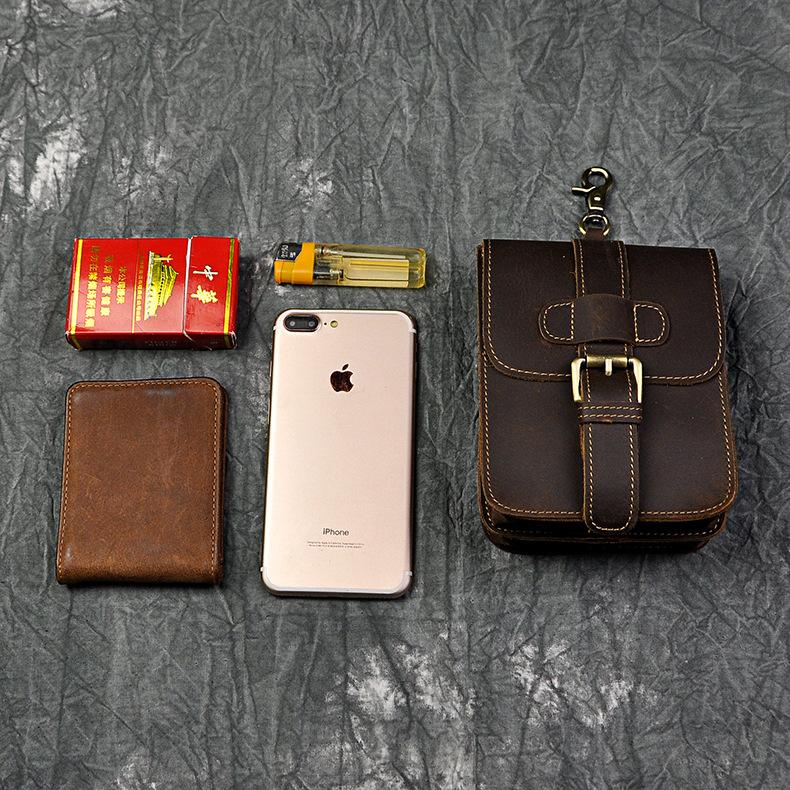 Leather Belt Pouch Mens Waist Bag Small Case for Men