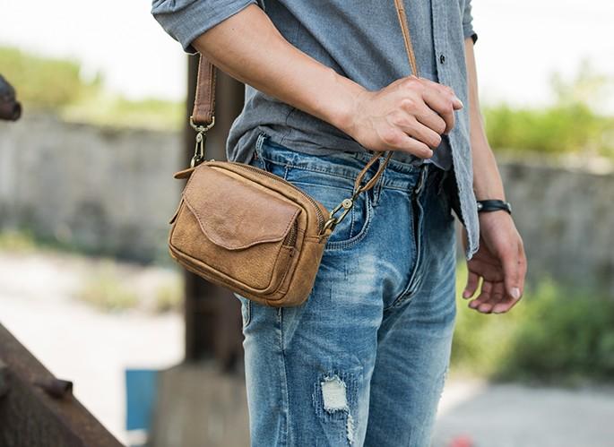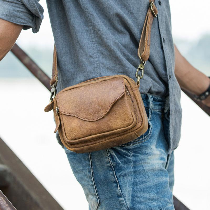 Style: Leather Belt Pouch Phone Case Mens Waist Bag Shoulder Bag for Men