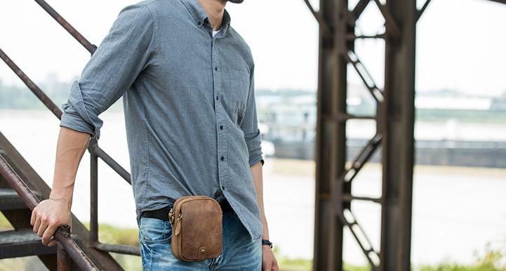 Style: Leather Belt Pouch Phone Case Mens Waist Bag Shoulder Bag for Men