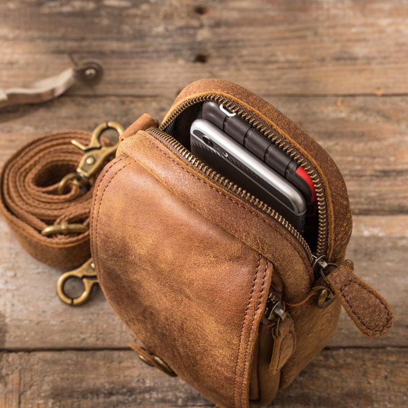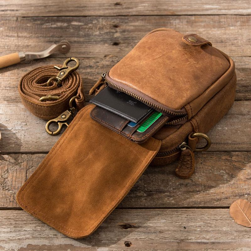 Design: Leather Belt Pouch Phone Case Mens Waist Bag Shoulder Bag for Men