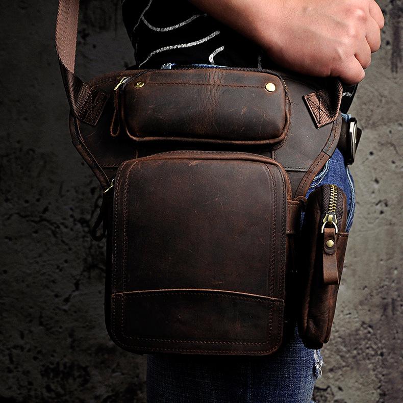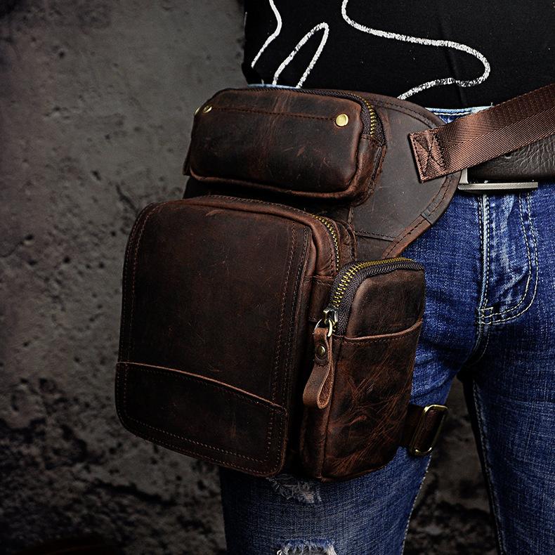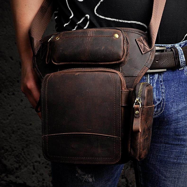 Design: Leather Leg Bag Belt Pouch Mens Waist Bag Shoulder Bag for Men