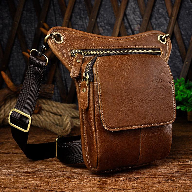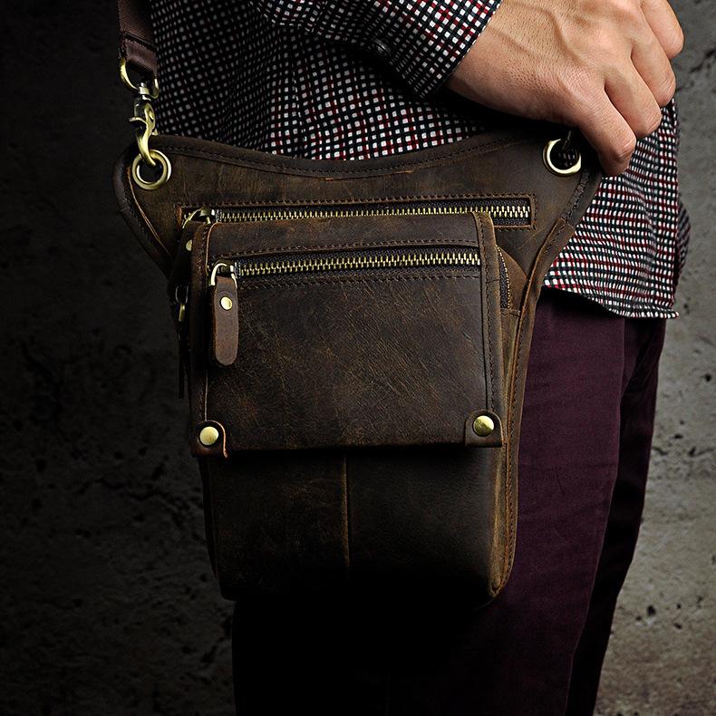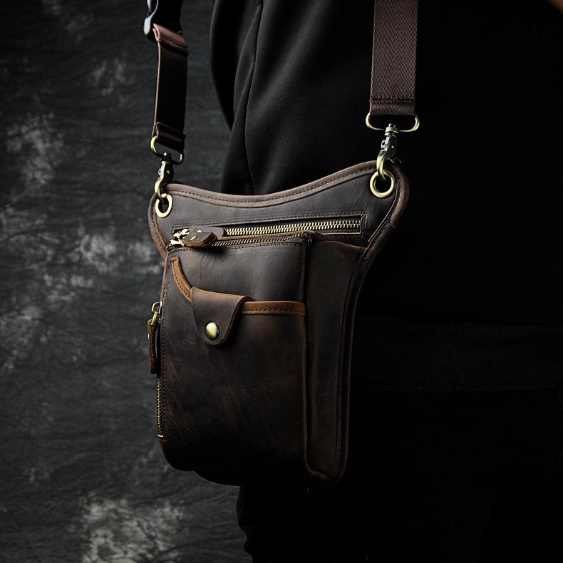 Design: Leather Leg Bag Belt Pouch Mens Waist Bag Shoulder Bag for Men