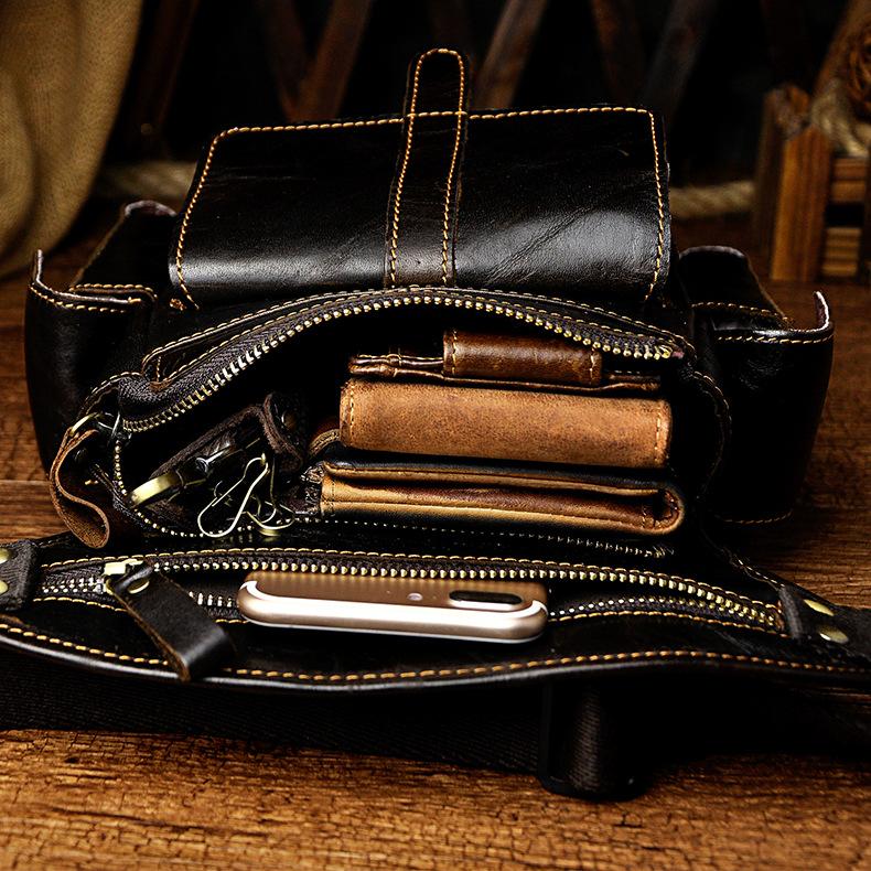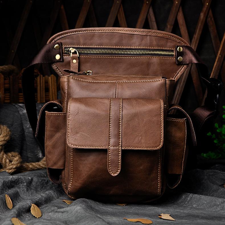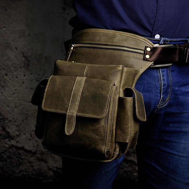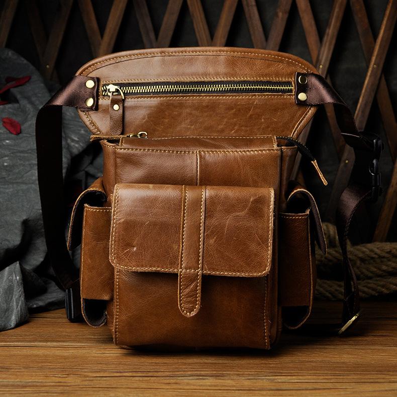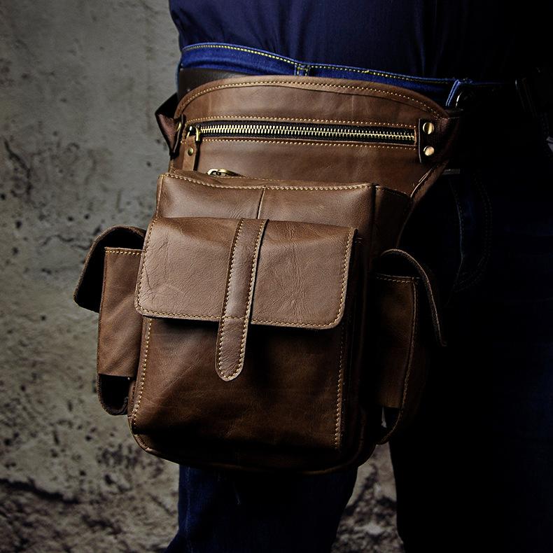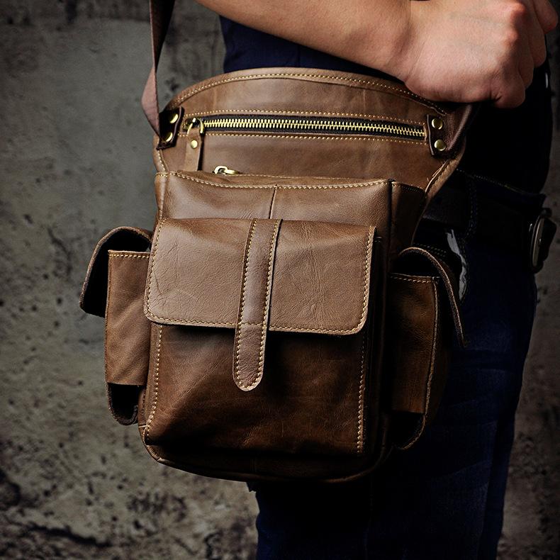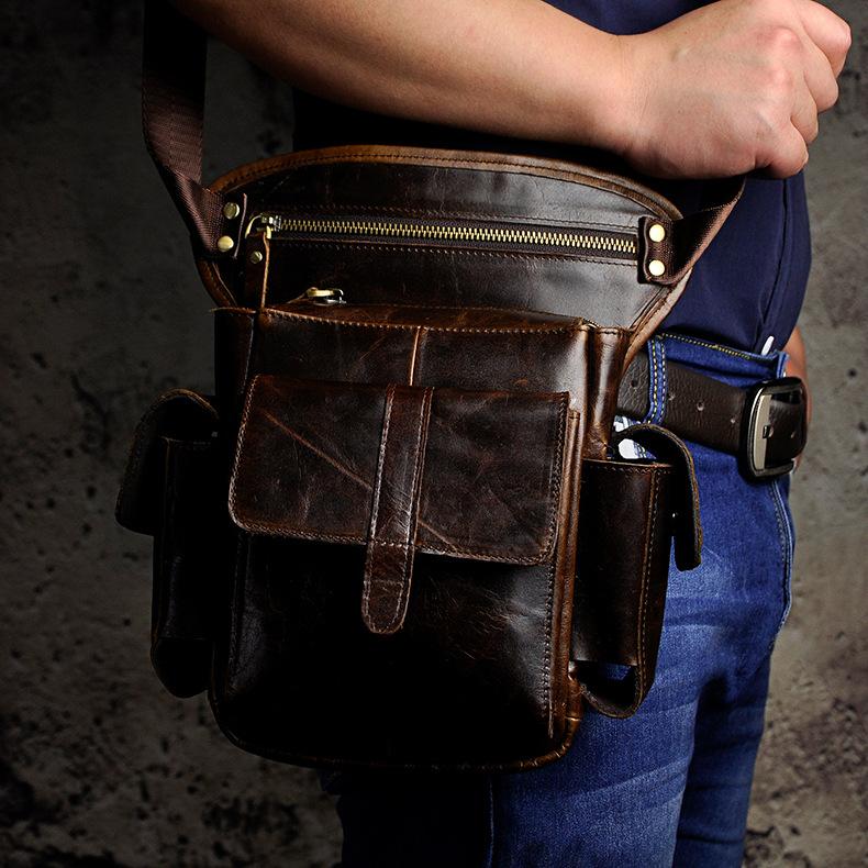 Design: Leather Leg Bag Belt Pouch Mens Waist Bag Shoulder Bag for Men