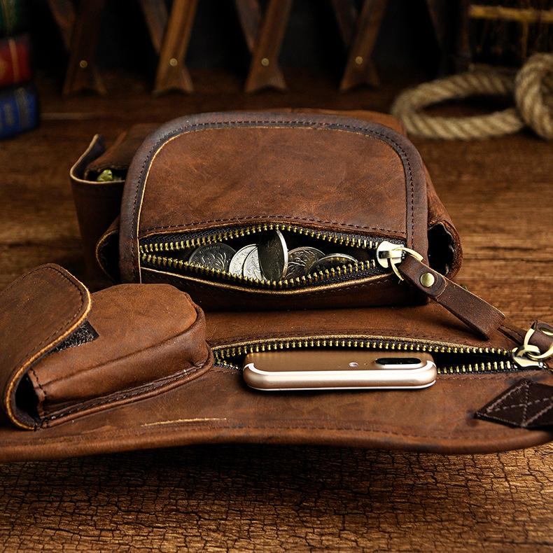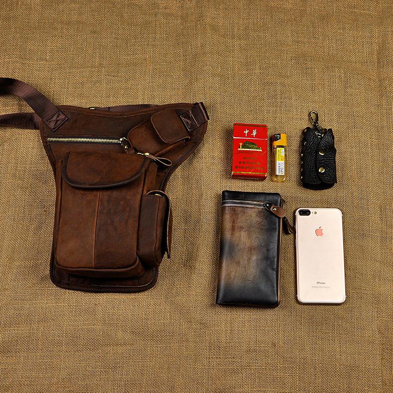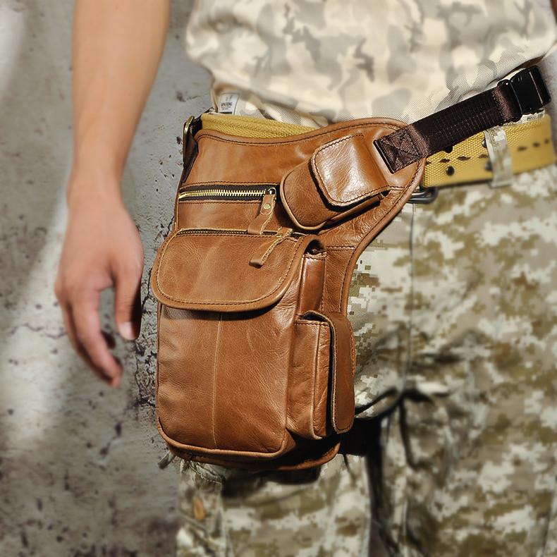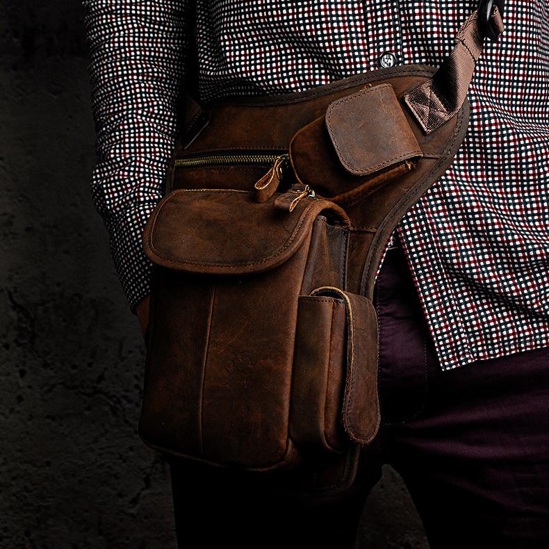 Design: Leather Leg Bag Belt Pouch Mens Waist Bag Shoulder Bag for Men