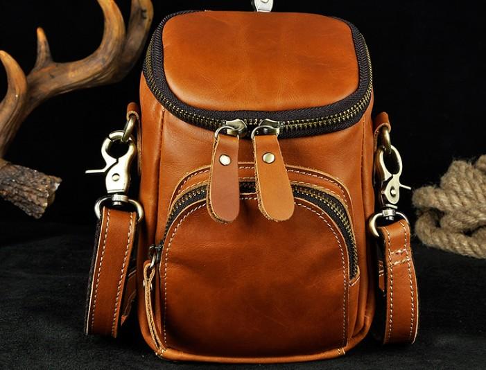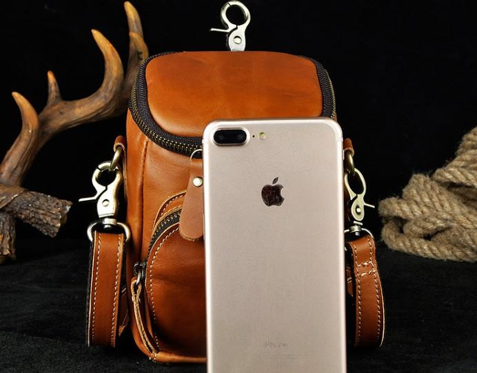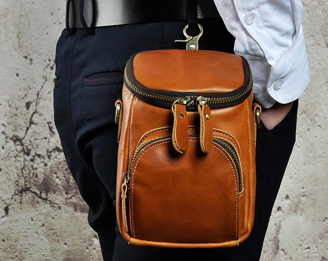 Design: Leather Mens Cell Phone Holster Belt Pouch Mens Waist Bag Shoulder Bag for Men