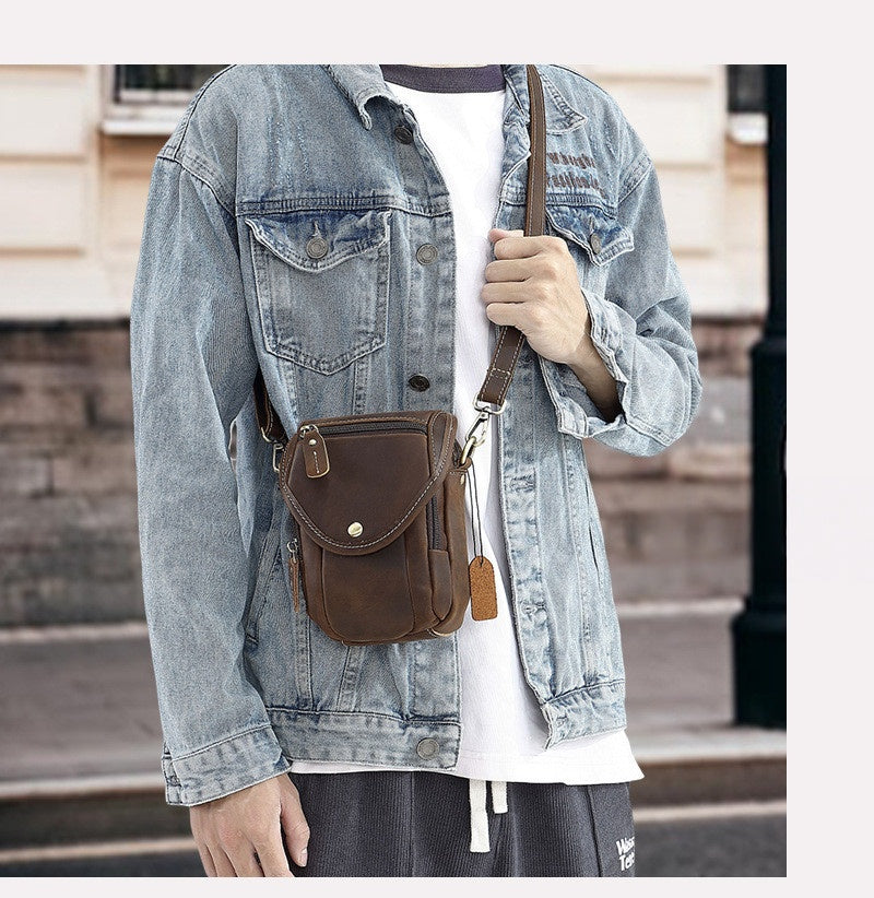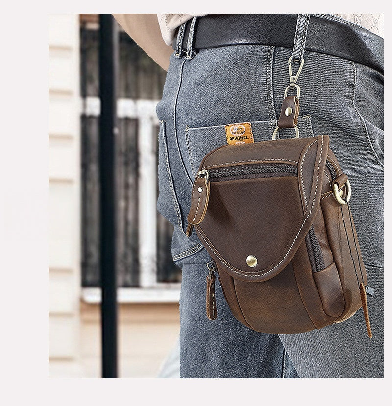 Engineered for maximum versatility, this intelligently organized Leather Phone Belt Pouch opens to reveal a front card slot and two main zippered compartments, providing ample space for your smartphone, power bank, wallet, smoking accessories, and daily essentials. The true innovation lies in its three-way carrying system: wear it traditionally through the rear belt loop, attach it via the integrated belt clip, or convert it into a crossbody bag using the detachable shoulder strap. This Mens Belt Pouch Leather adapts to your lifestyle, offering multiple wearing options for urban exploration, travel, work, or outdoor adventures.