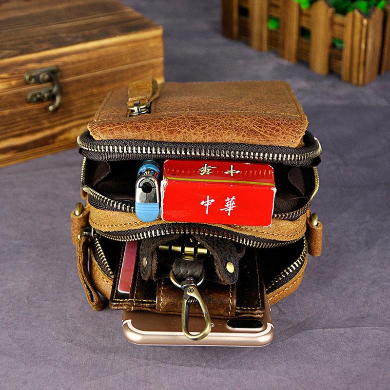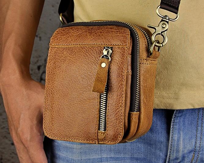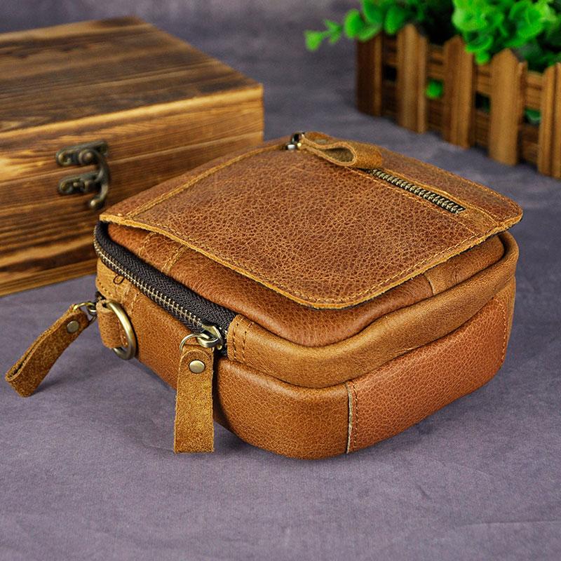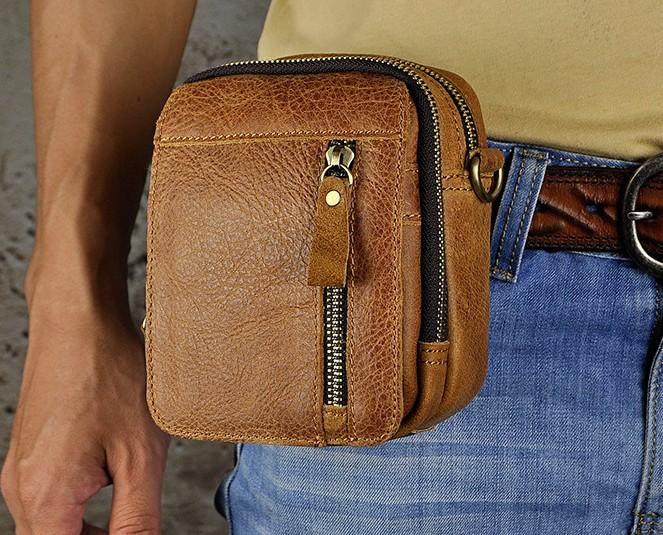 Design: Small Mens Leather Side Bag Belt Pouch Holster Belt Case Waist Pouch for Men