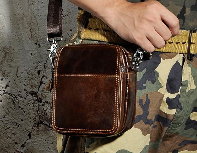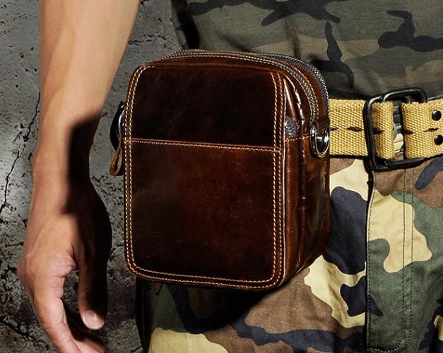 Design: Small Mens Leather Side Bag Belt Pouch Holster Belt Case Waist Pouch for Men