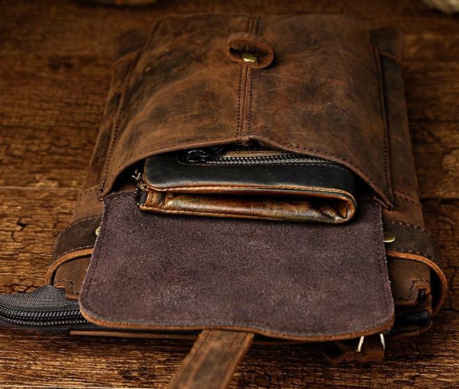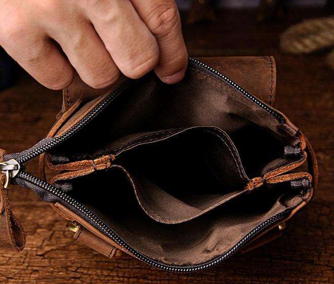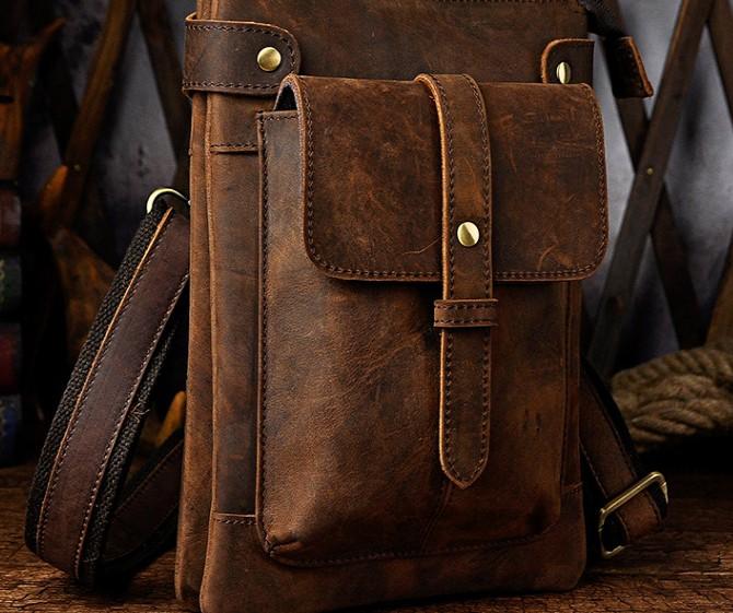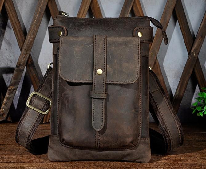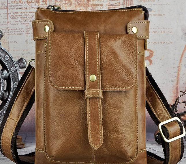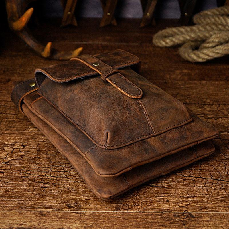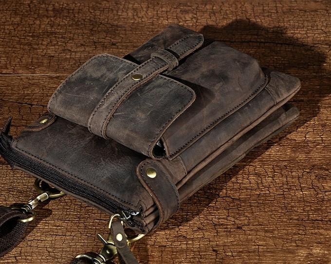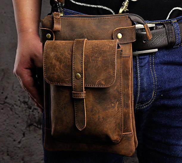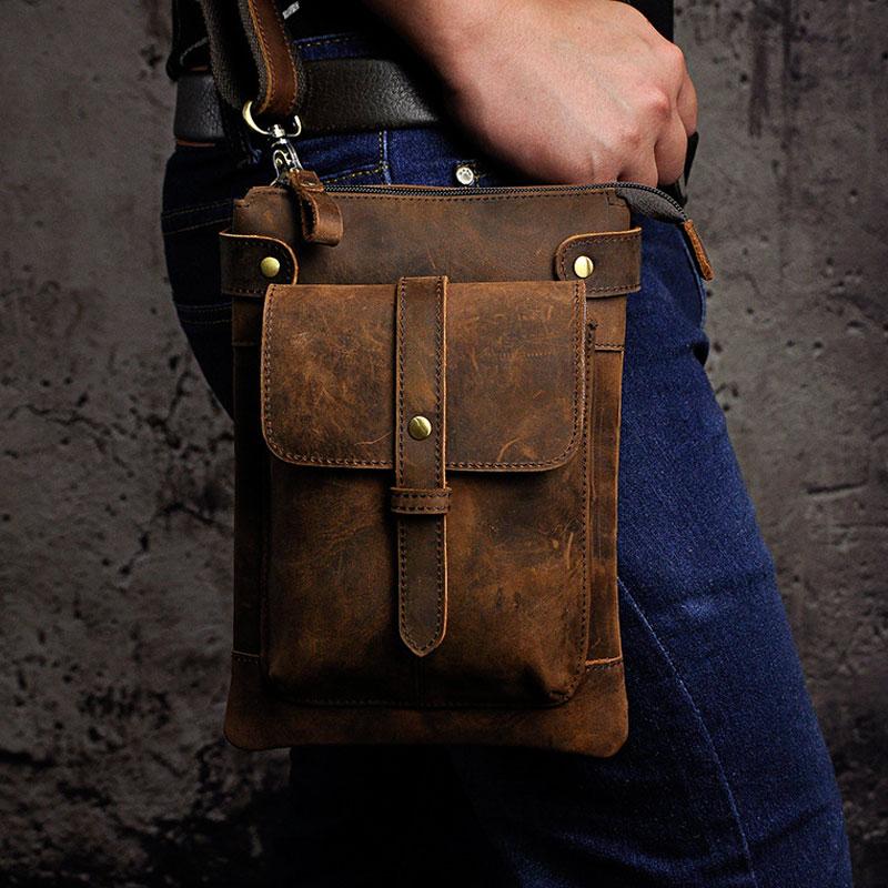 Design: Mens Leather Small Side Bag COURIER BAG Waist Bag Holster Belt Case Belt Bag for Men