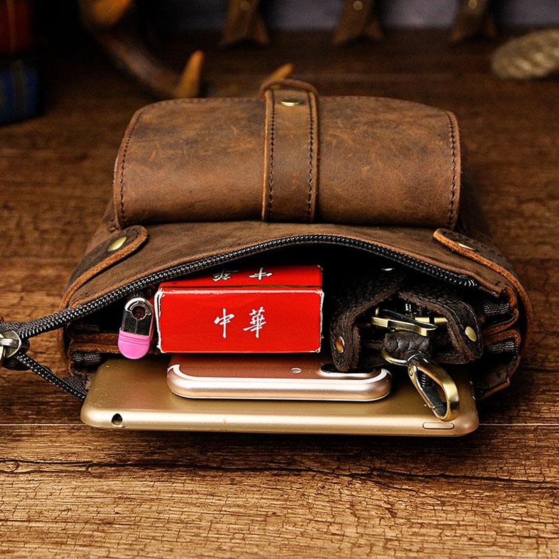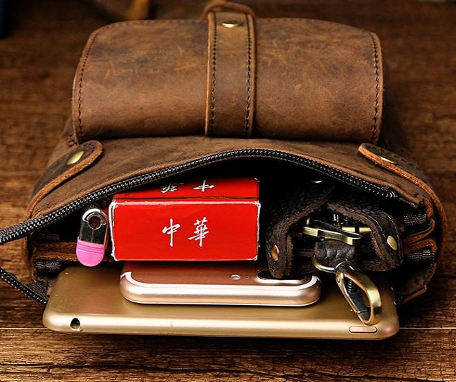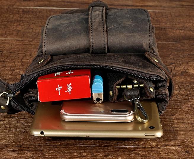 Mens Leather Small COURIER BAG Side Bag Waist Bag Holster Belt Case Belt Pouch for Men