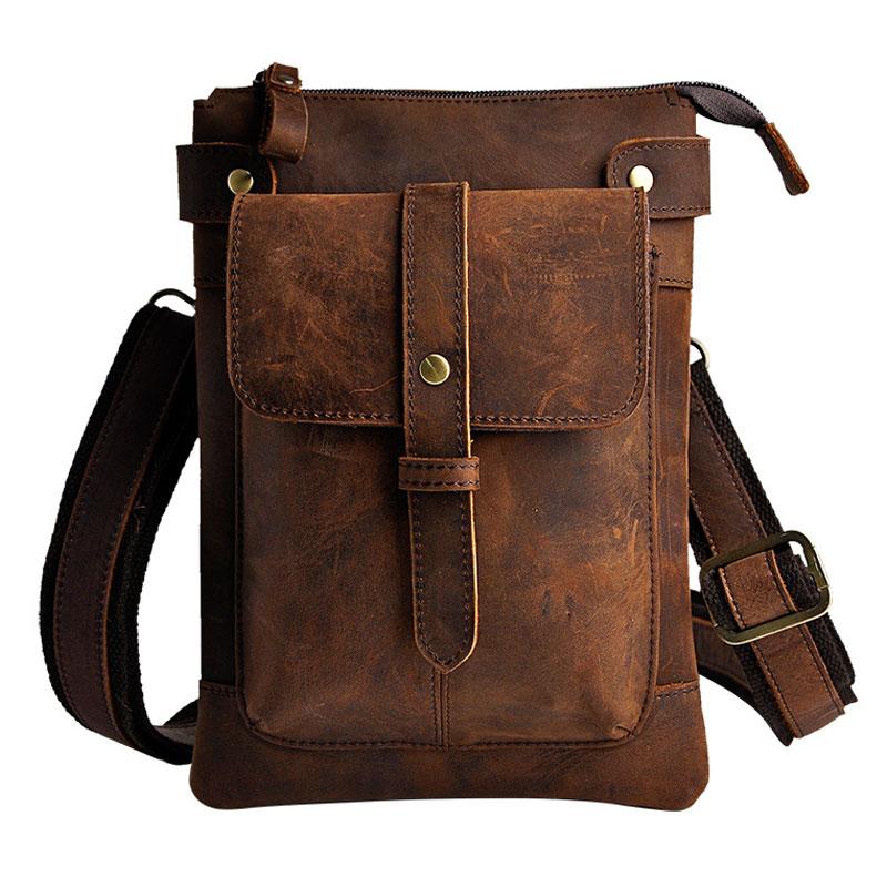 Style: Mens Leather Small Side Bag COURIER BAG Waist Bag Holster Belt Case Belt Bag for Men
