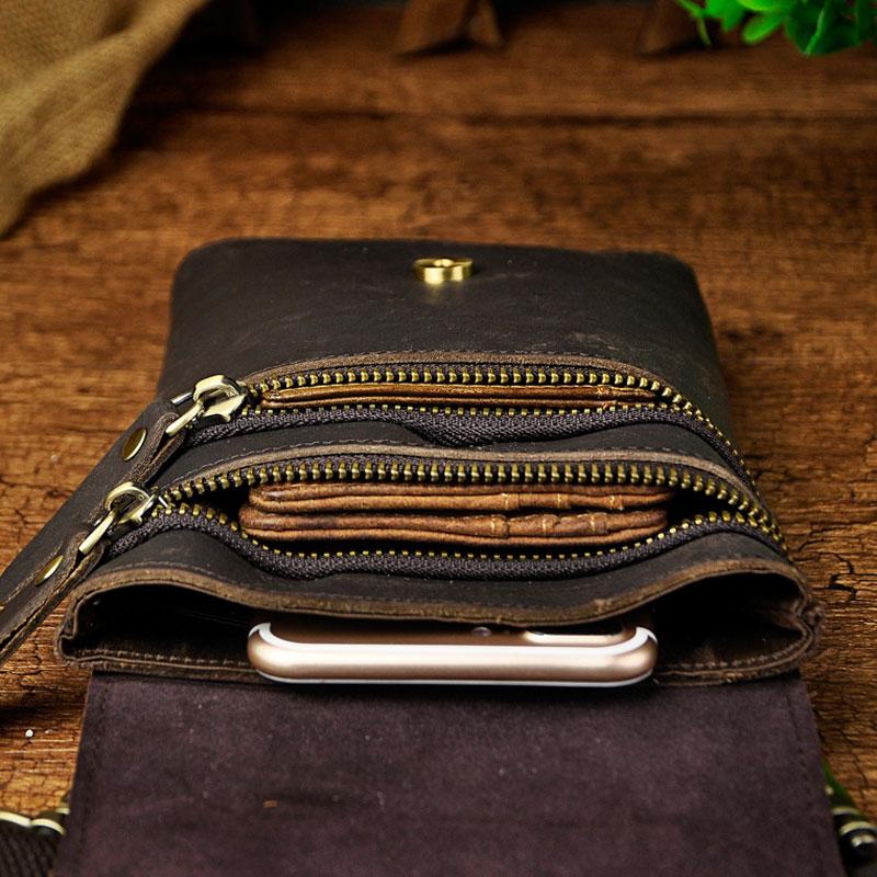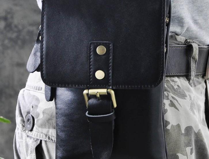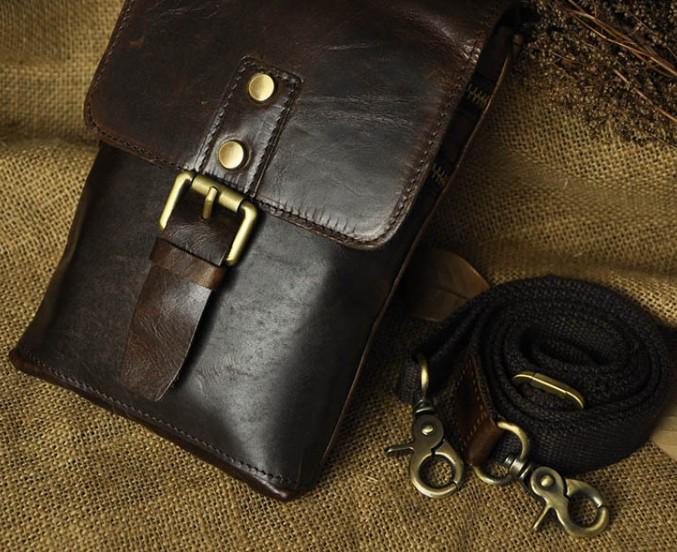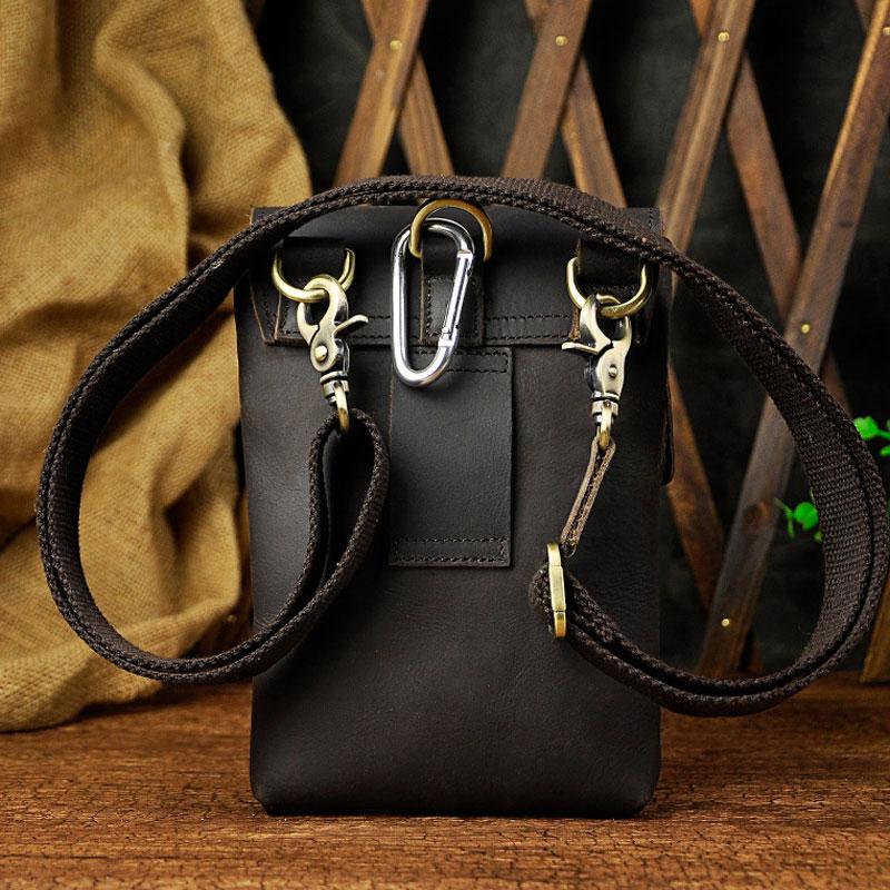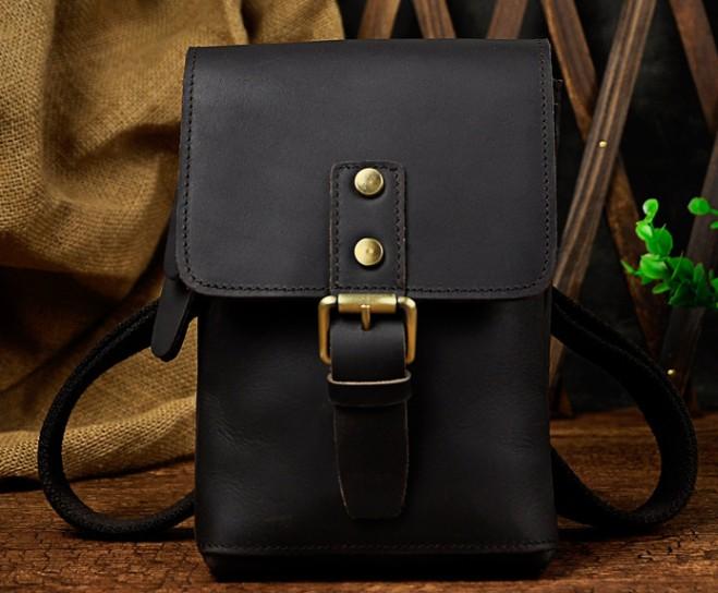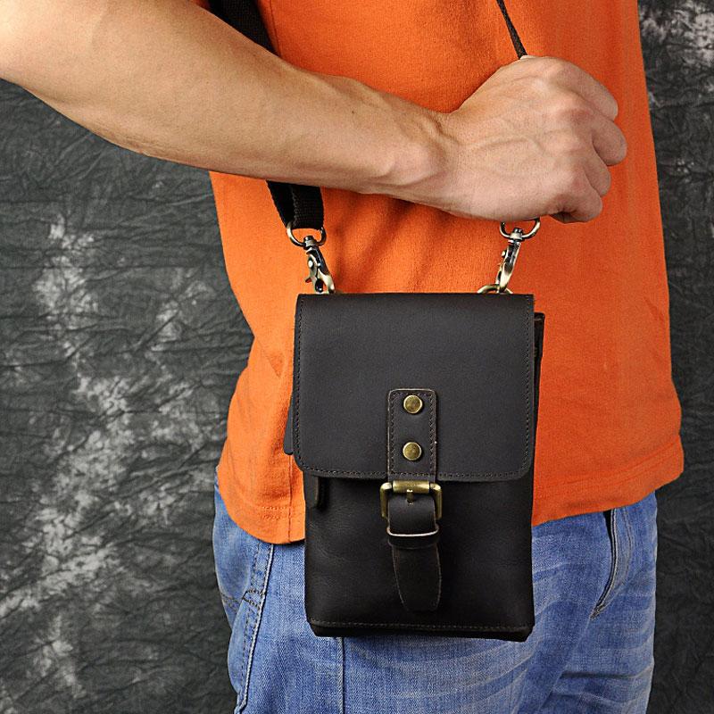 Design: Mens Leather Small Side Bag  Waist Pouch COURIER BAG Holster Belt Case Belt Pouch for Men
