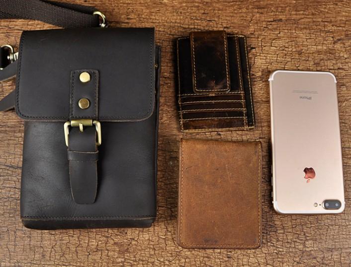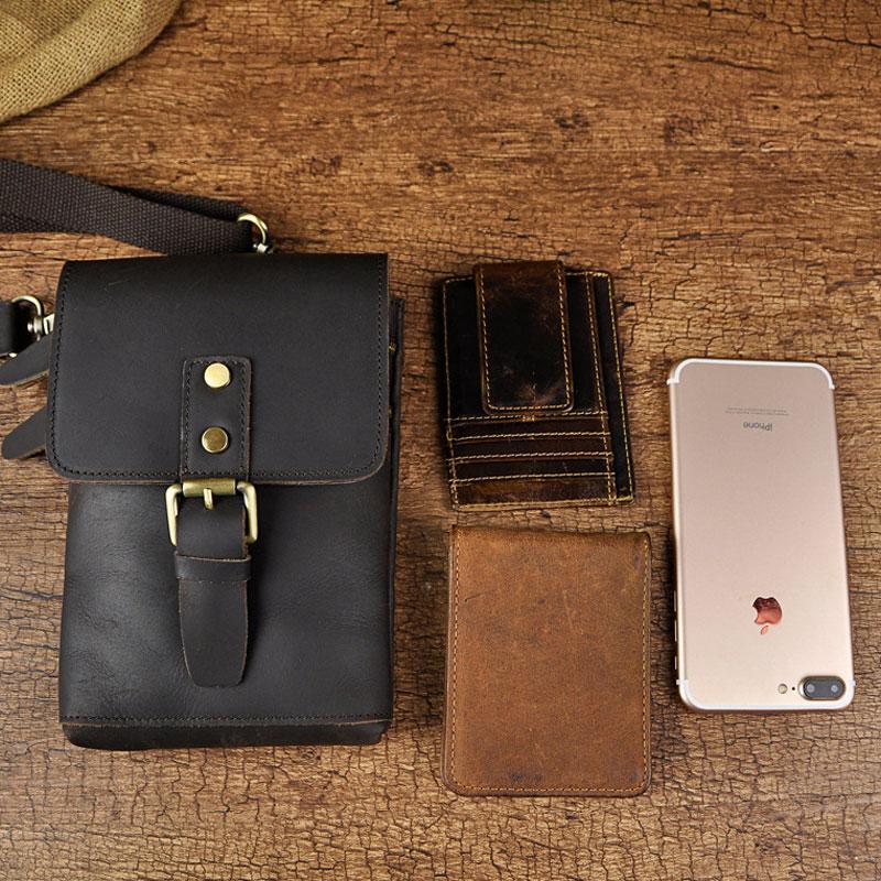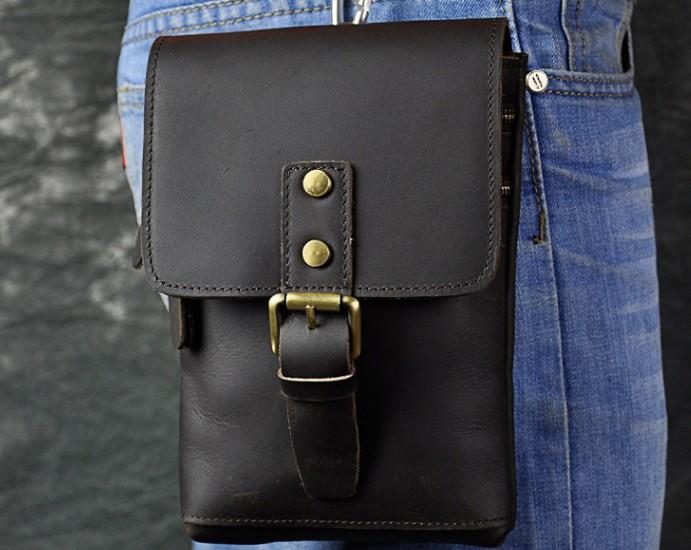 Style: Mens Leather Small Side Bag  Waist Pouch COURIER BAG Holster Belt Case Belt Pouch for Men