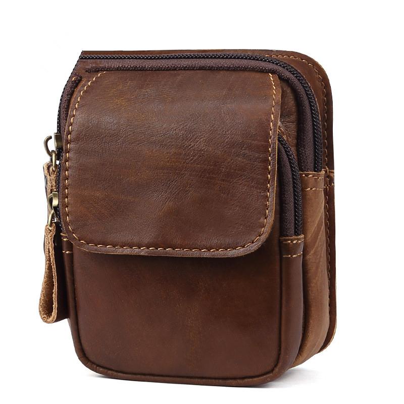 Design: Vintage Brown Leather Men's Cell Phone Holster Belt Pouch Belt Bag For Men