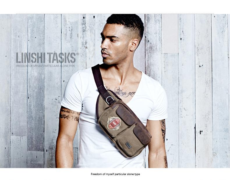 Style: Navy Blue Canvas Leather Fanny Pack Men's Brown Chest Bag Sling Hip Bag Waist Bag For Men