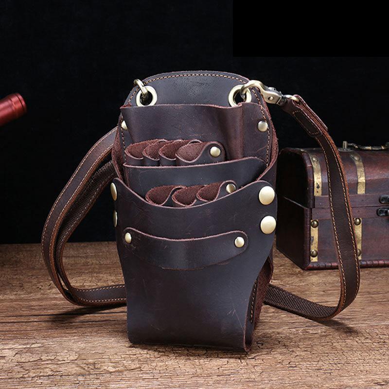 Style: Cool Leather Belt Pouch Mens Hairstylist Tool Barber Pouch Scissor Case for Men