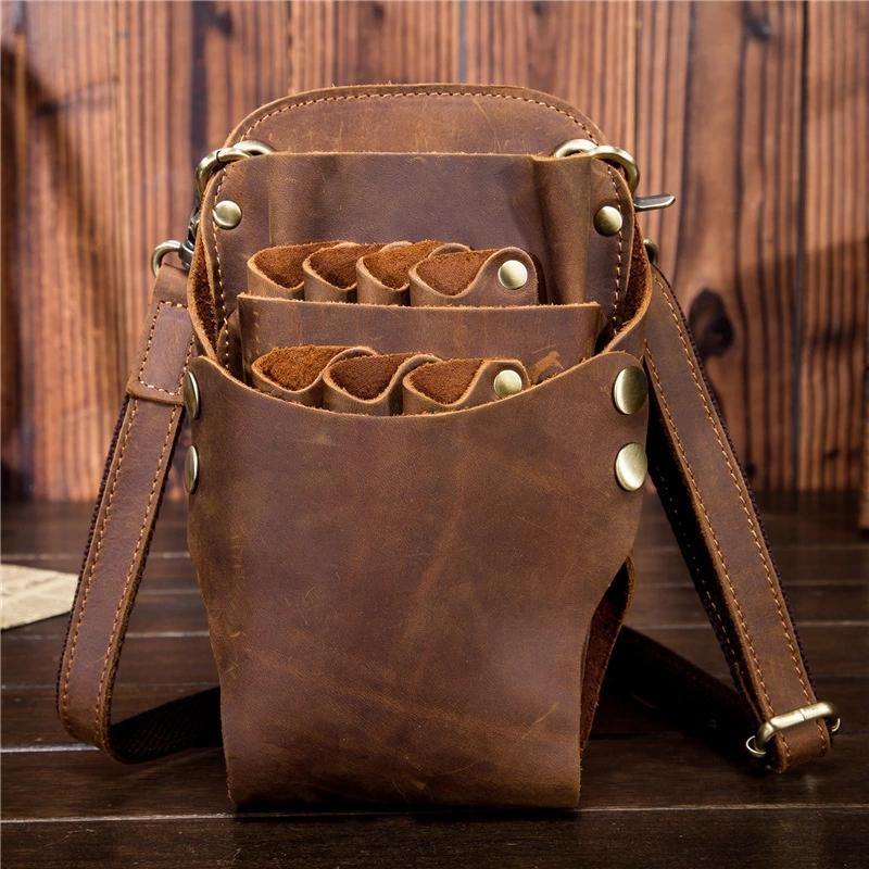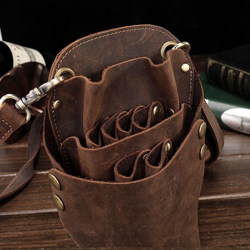 Design: Cool Leather Belt Pouch Mens Hairstylist Tool Barber Pouch Scissor Case for Men