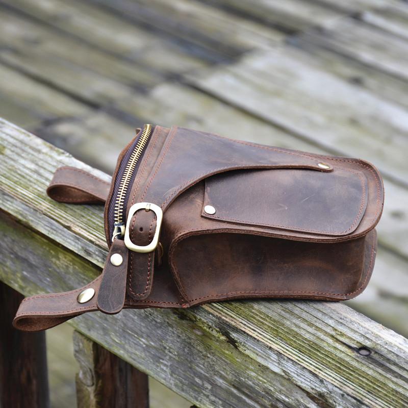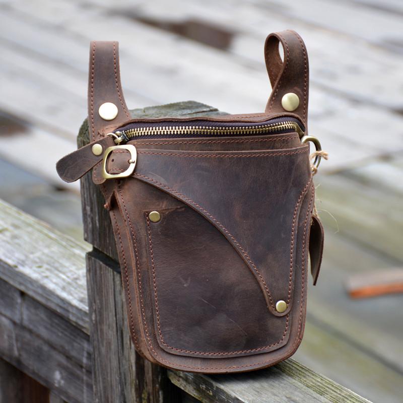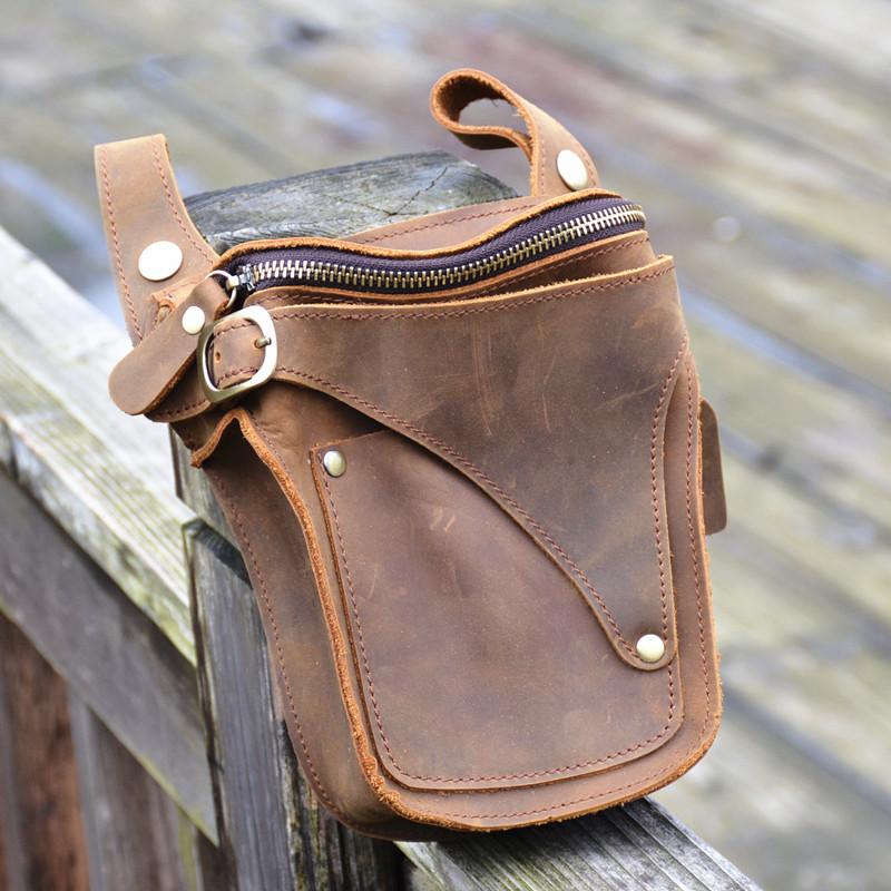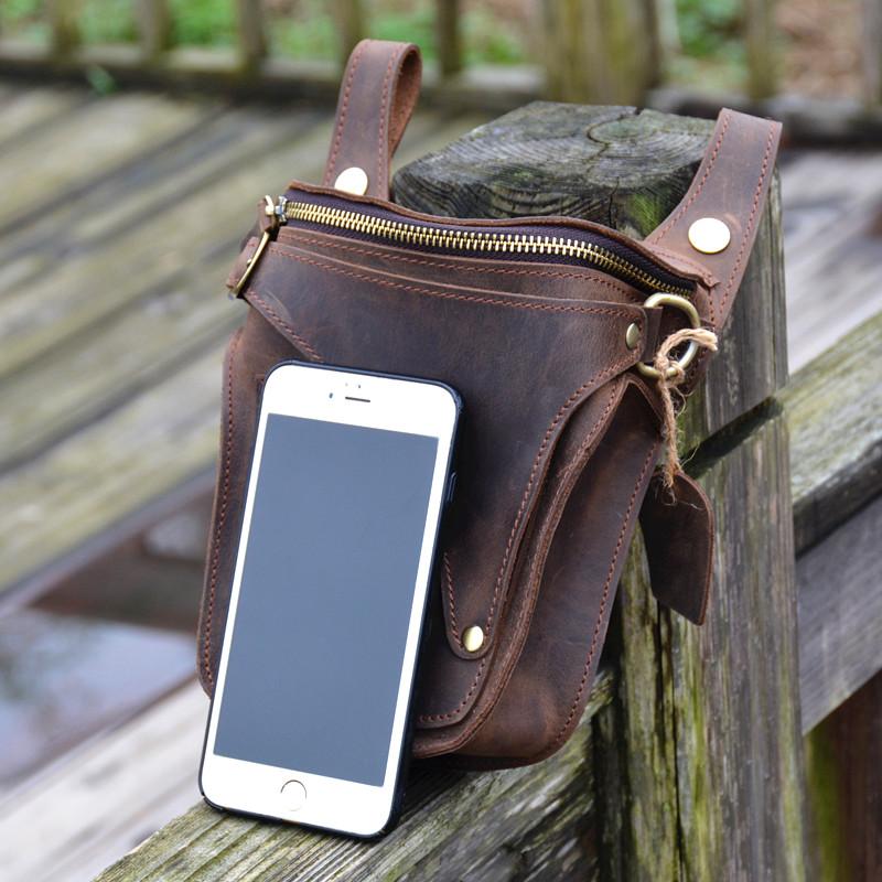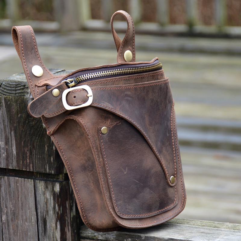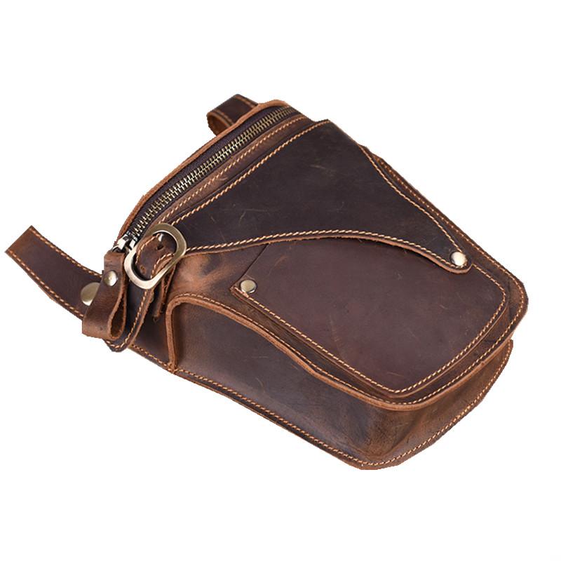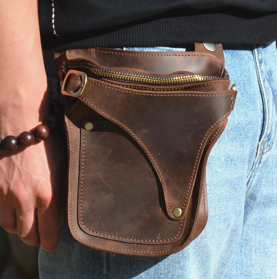 Design: Cool Brown Leather Men's Belt Bag Waist Bag Motorcycle Bag Belt Pouch For Men