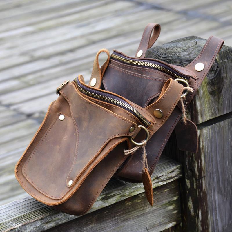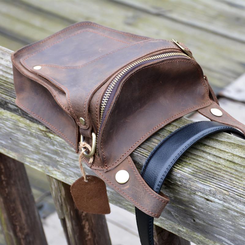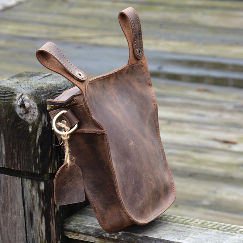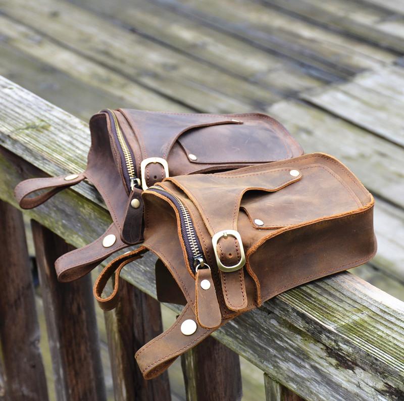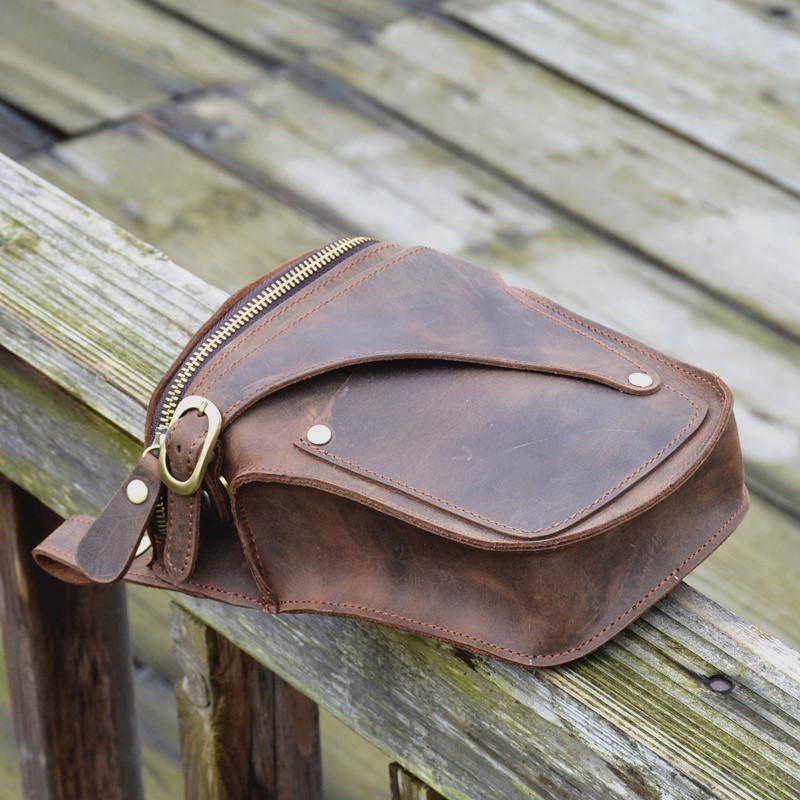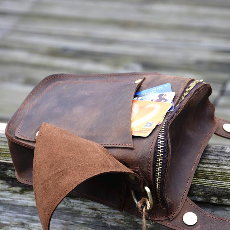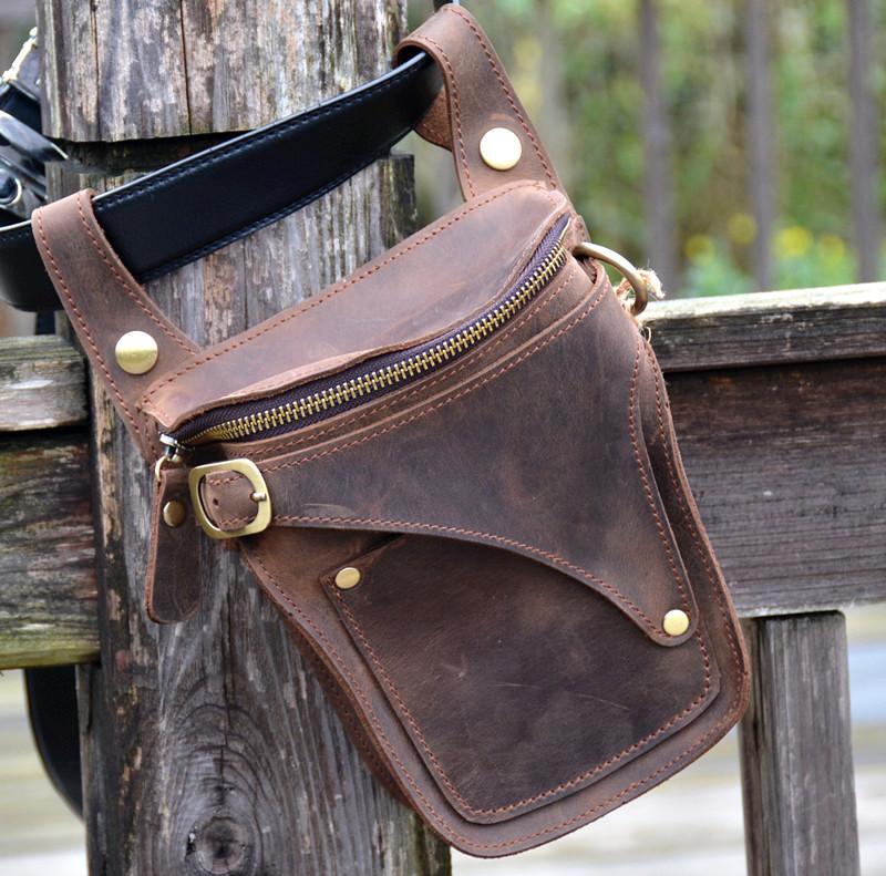 Design: Cool Brown Leather Men's Belt Bag Waist Bag Motorcycle Bag Belt Pouch For Men