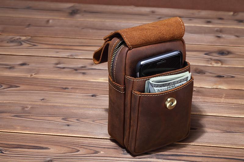 Design: Retro Brown Leather Cell Phone HOLSTER Belt Pouches for Men Waist Bags BELT BAG Sports Bag For MenOverview: