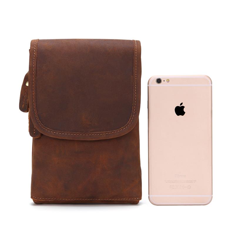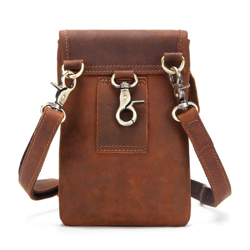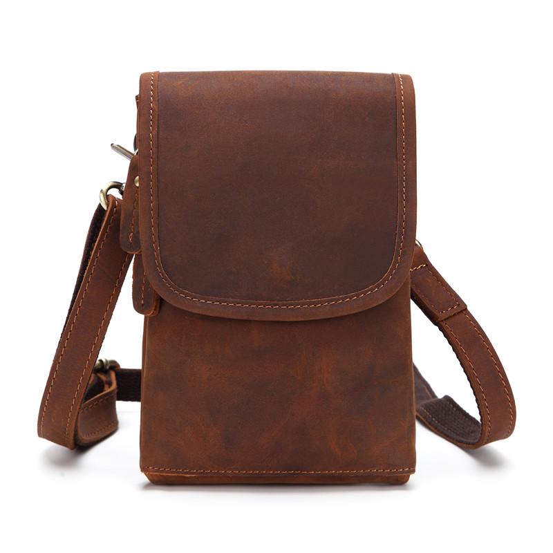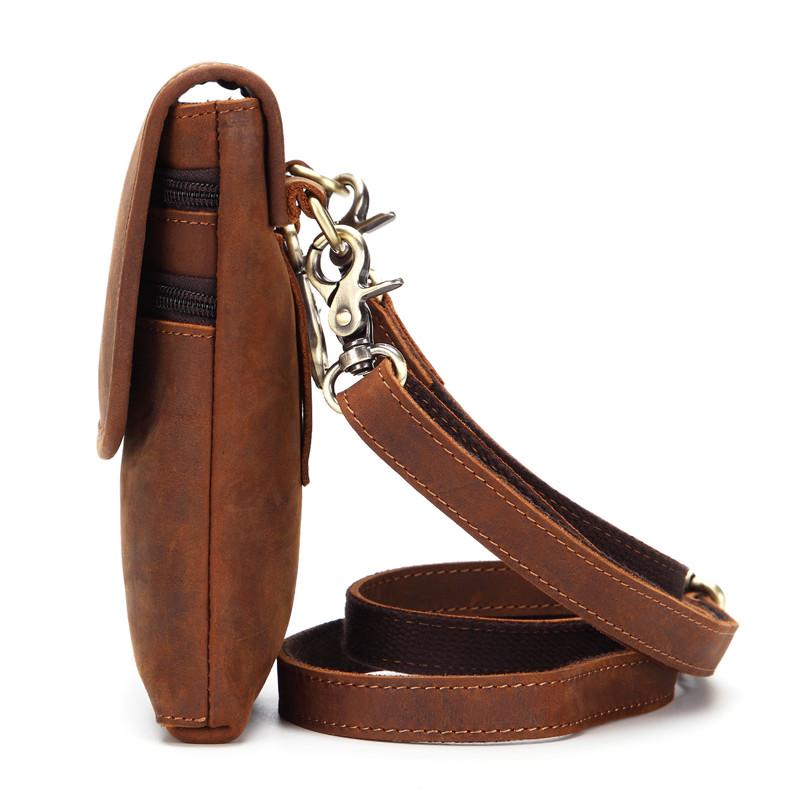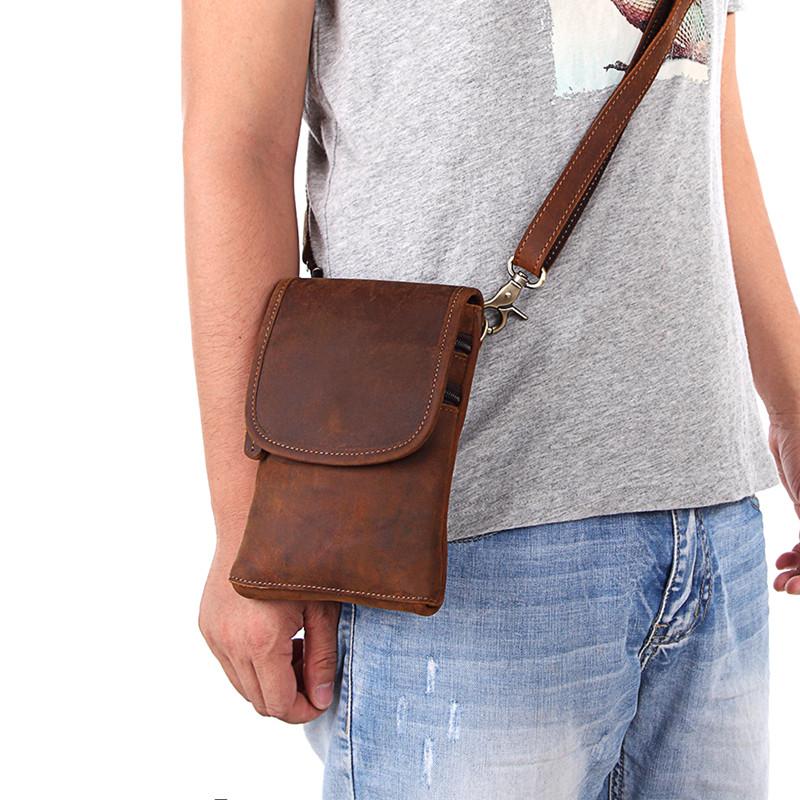 Design: Cool Brown Leather Mens Mini Shoulder Bag Belt Pouch Belt Bags For Men