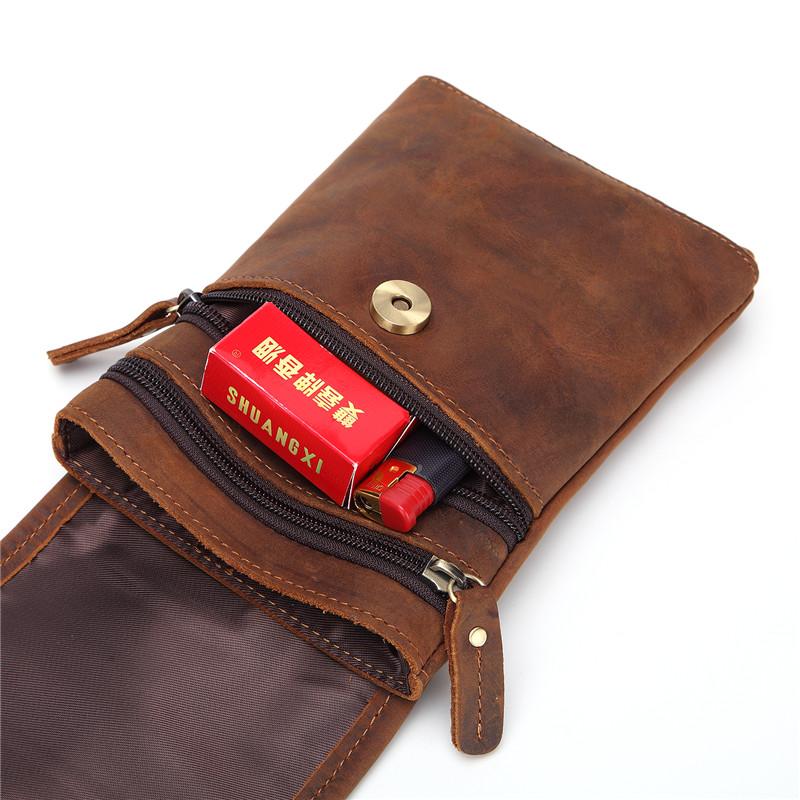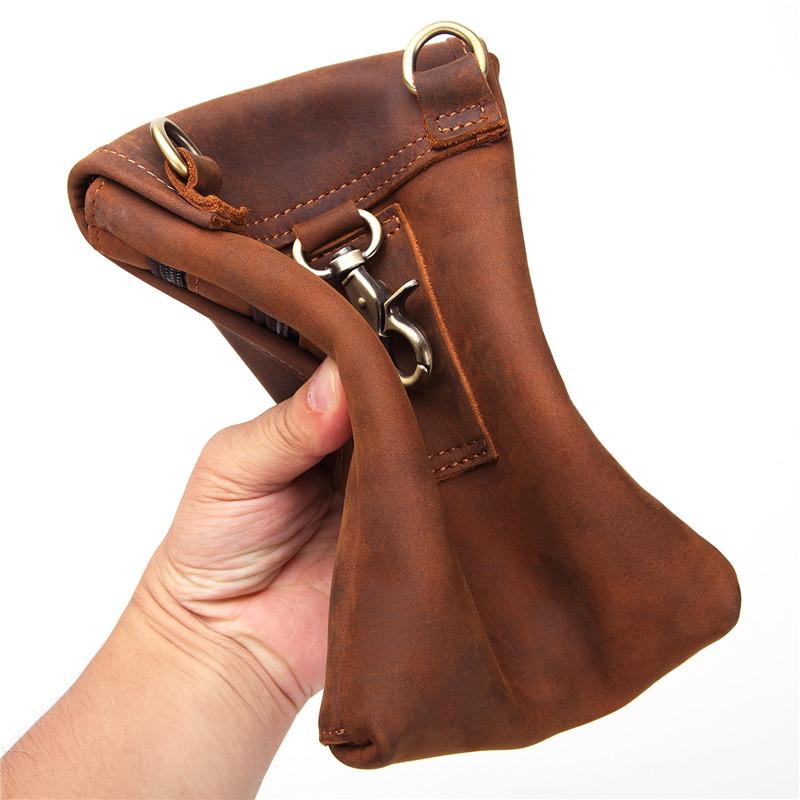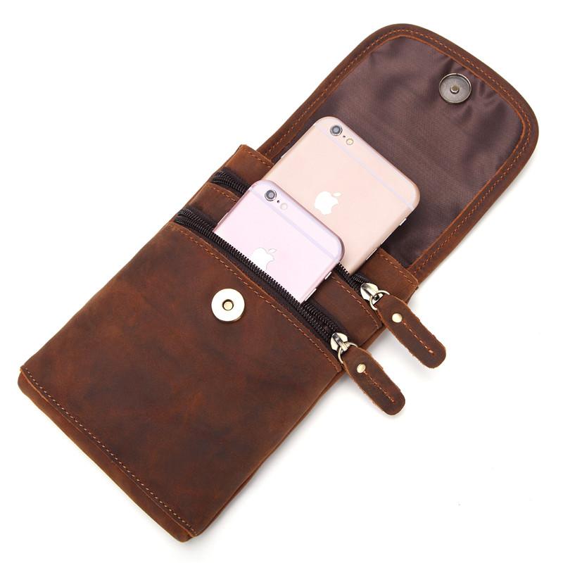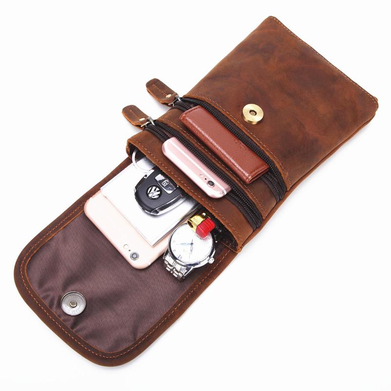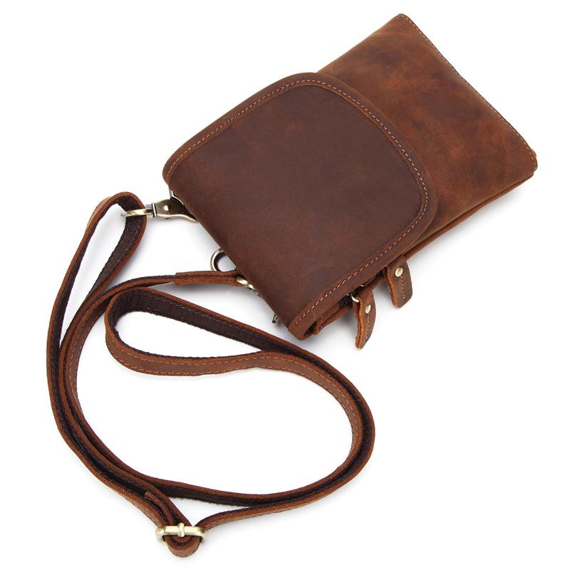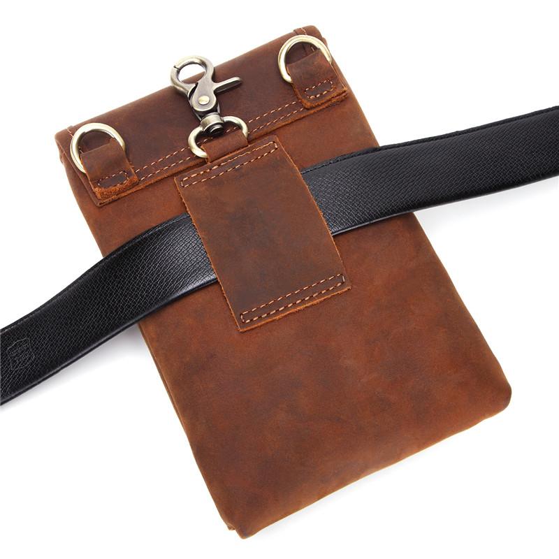 Design: Cool Brown Leather Mens Mini Shoulder Bag Belt Pouch Belt Bags For Men