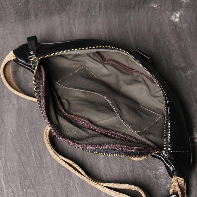 Style: Simple Leather Fanny Pack Men's Black Chest Bag Hip Bag 8 inches Waist Bag For Men