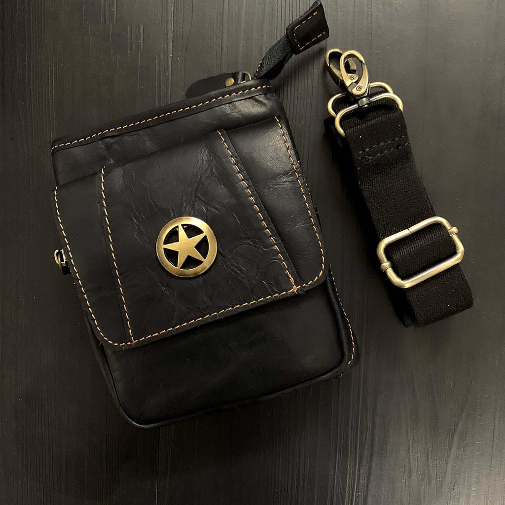 Design: Small Casual Leather Men's Cellphone Belt Bag Motorcycle Bag Hiphop Trendy Shoulder Bag For MenOverview: