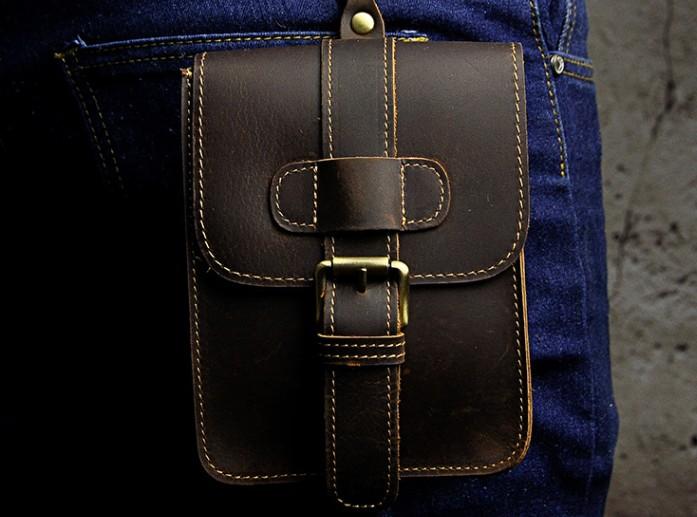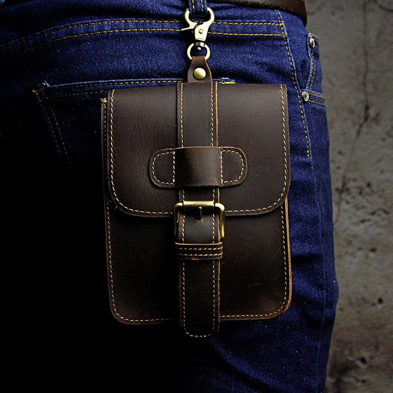 Design: Small Mens Leather Belt Pouch Holster Belt Case Cell Phone Waist Pouch for Men