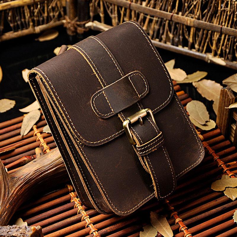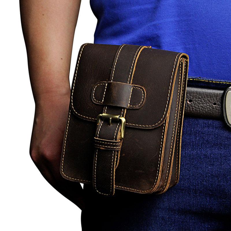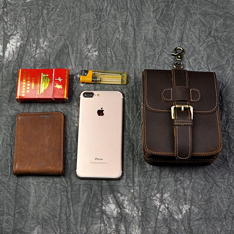 Small Leather Belt Pouch Mens Holsters Belt Cases Cell Phone Waist Pouch for Men