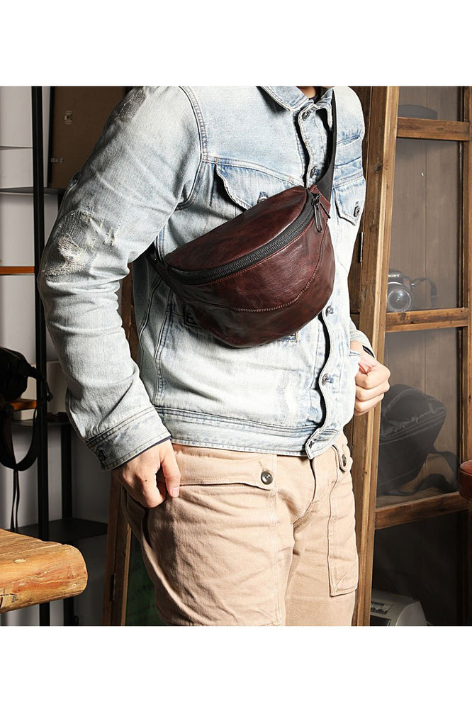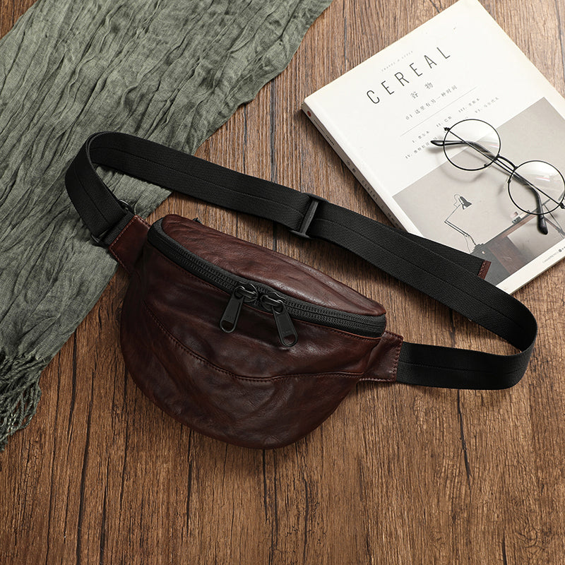 Small Leather Fanny Pack Mens Waist Bag Hip Pack Small Leather Belt Bag Bumbag for Men