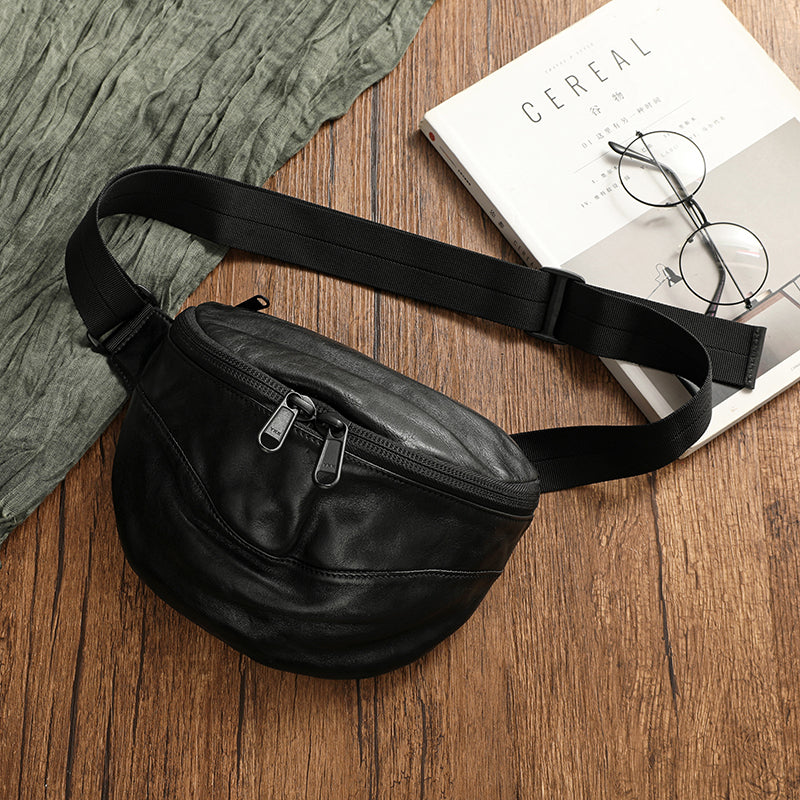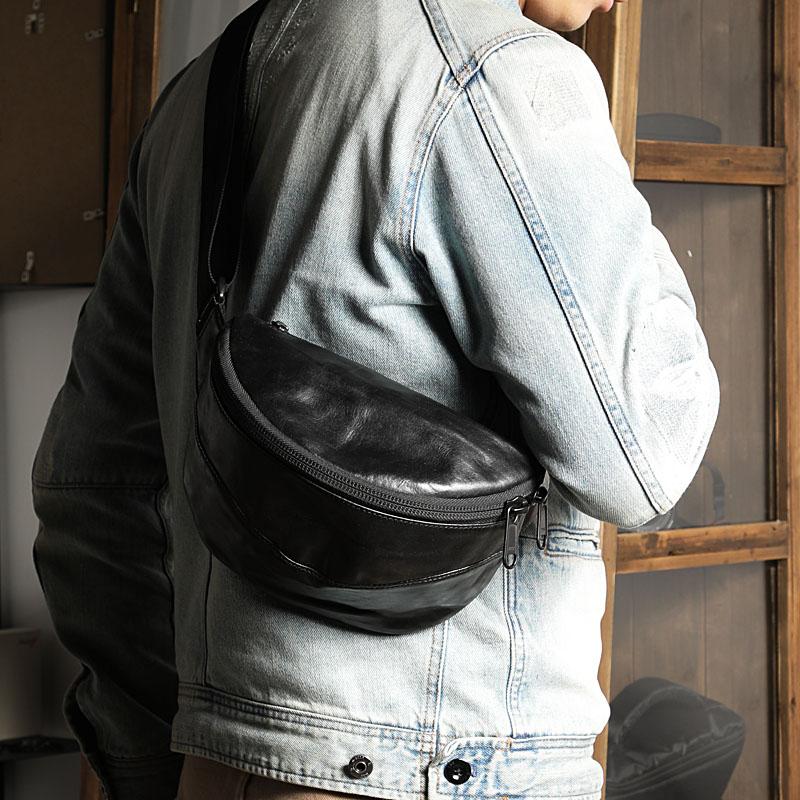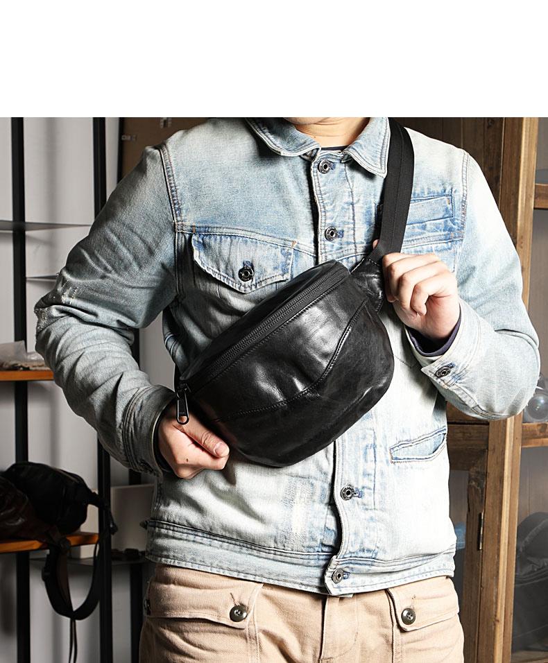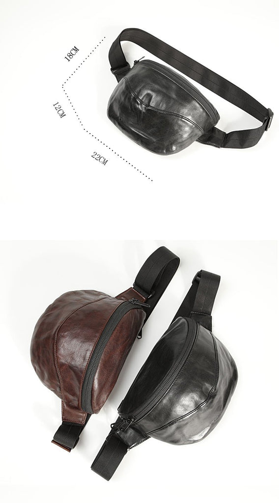 Style: Black Handmade Leather Men Fanny Pack Small Brown Waist Bag Hip Pack Belt Bag Bumbag for Men