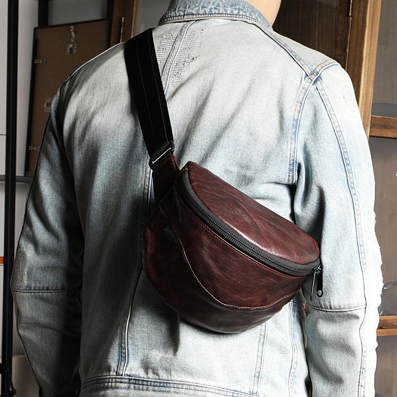 Design: Black Handmade Leather Men Fanny Pack Small Brown Waist Bag Hip Pack Belt Bag Bumbag for Men