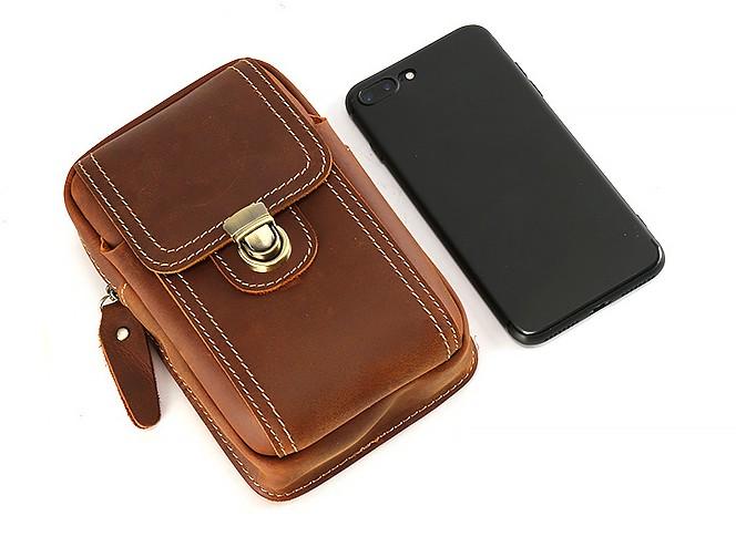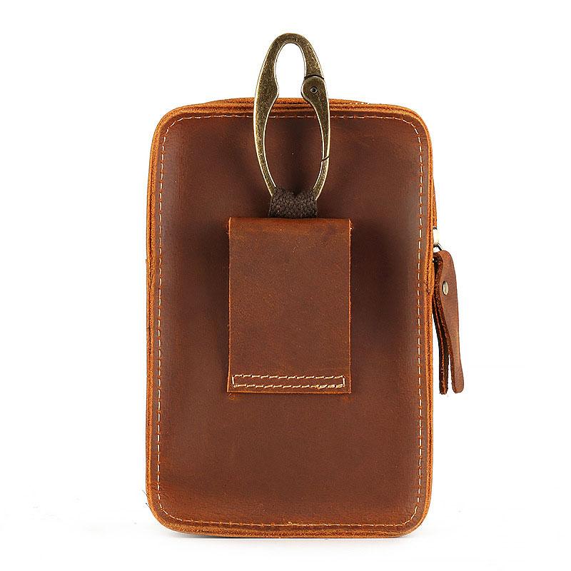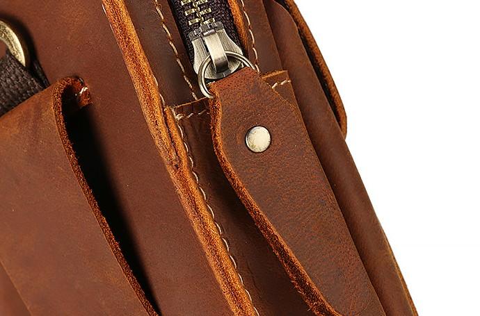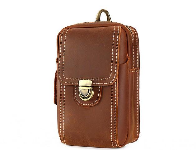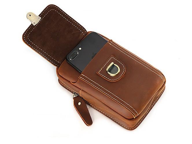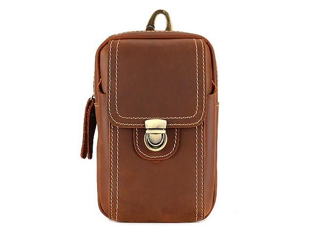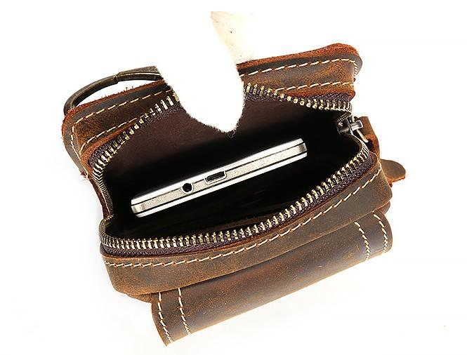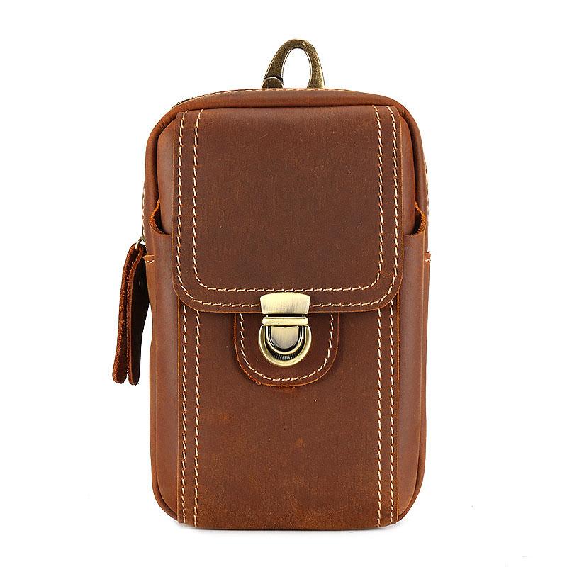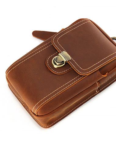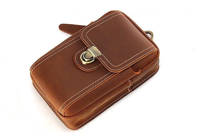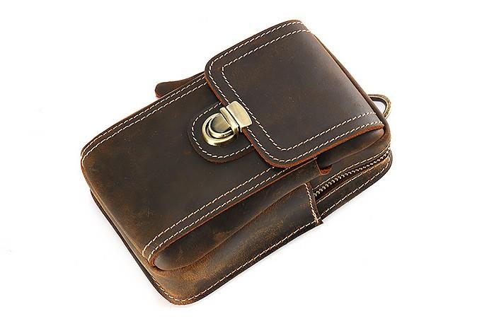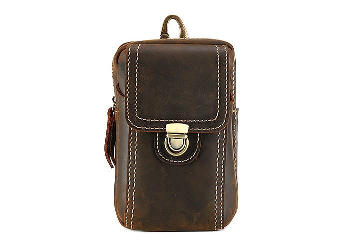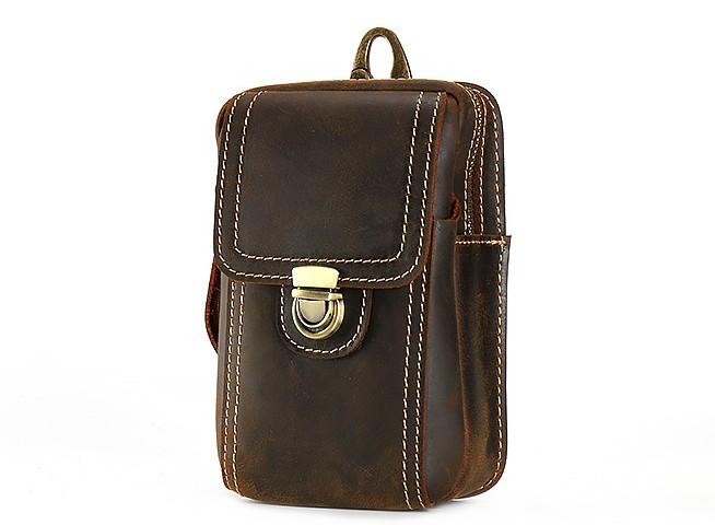 Style: Dark Brown and Brown Leather Mens Belt Pouch Mini Shoulder Bags Belt Bags For Men