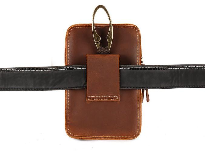 Design: Dark Brown and Brown Leather Mens Belt Pouch Mini Shoulder Bags Belt Bags For Men