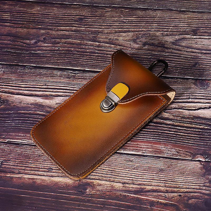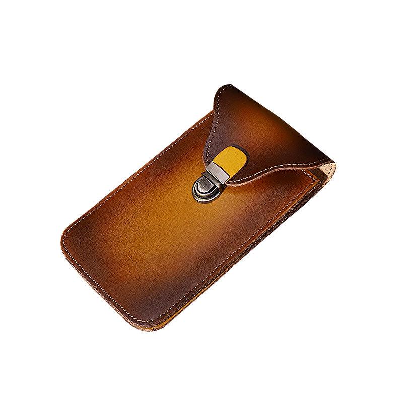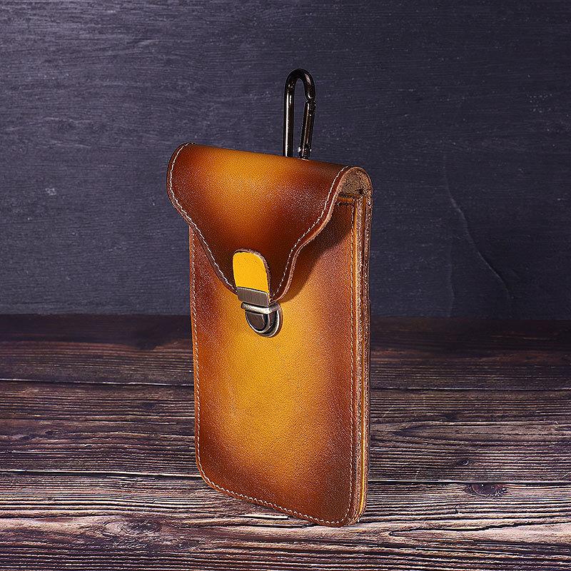 Design: Yellow Brown Leather Cell Phone Mens Belt Pouches Waist Bags BELT BAG Mini Bag For MenOverview:
