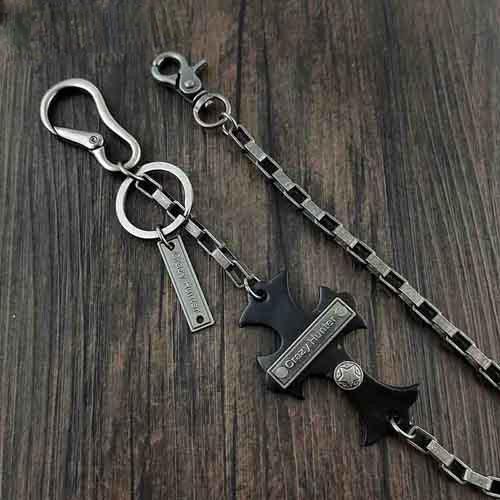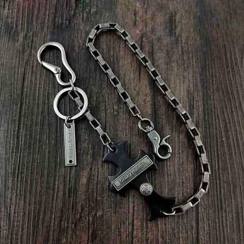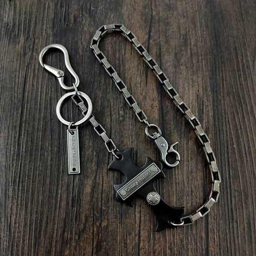 Design: 24'' HEAVY METAL CROSS BIKER SILVER WALLET CHAIN LONG PANTS CHAIN SILVER Jeans Chain Jean Chain FOR MEN