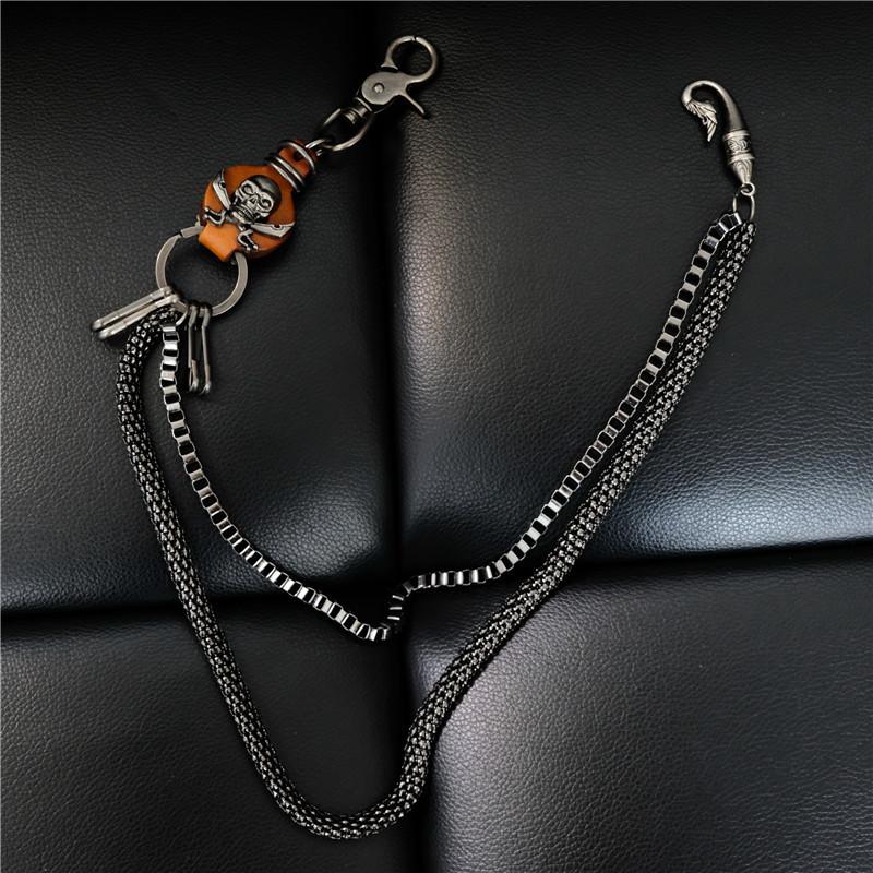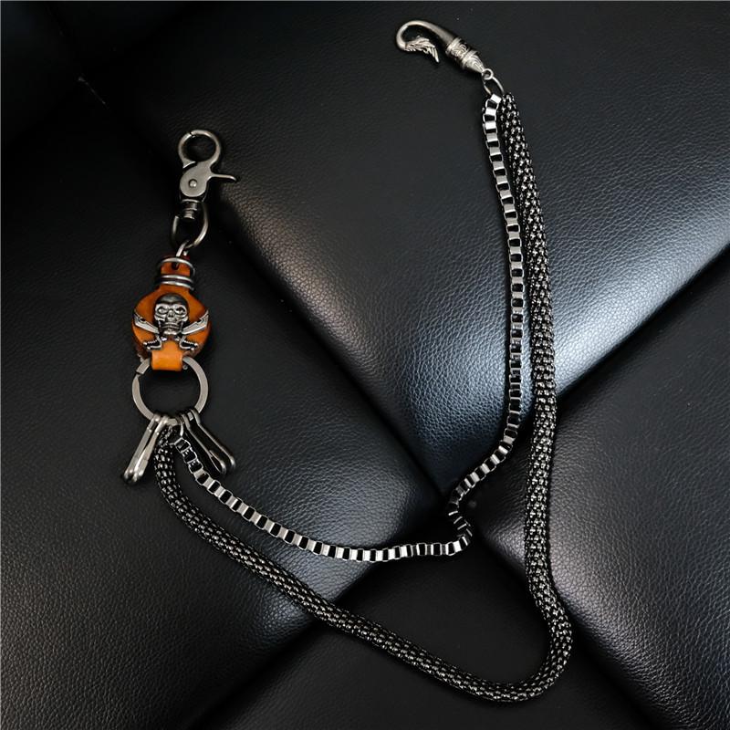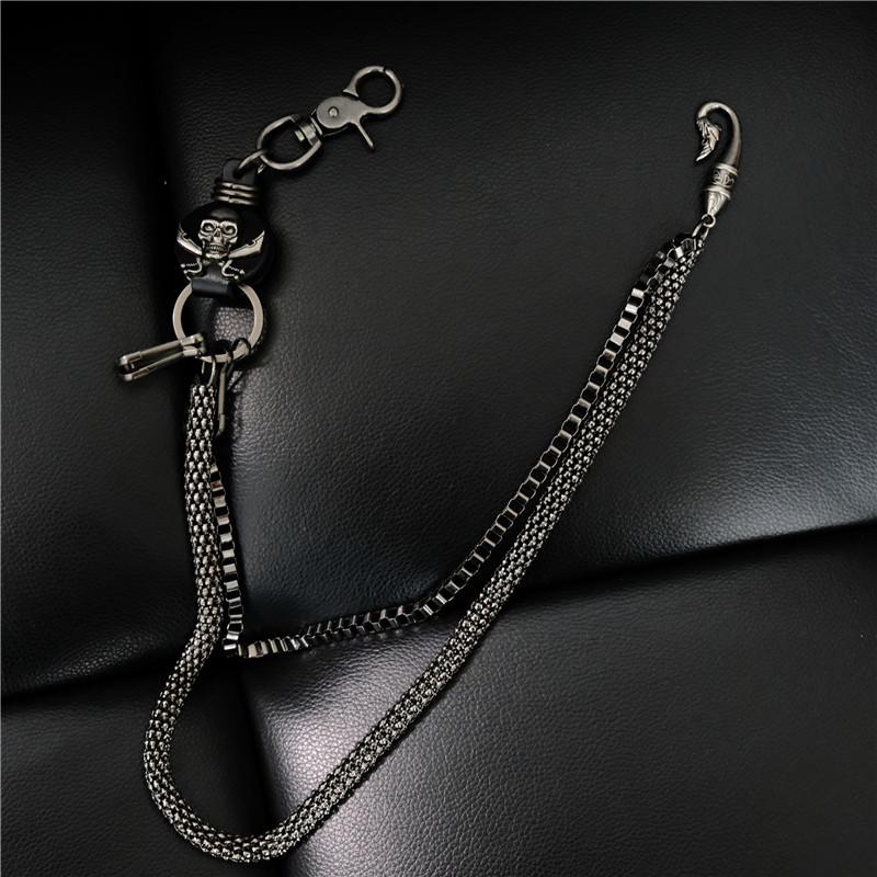 Design: Badass Mens Leather Skull Key Chain Long Pants Chain Biker Wallet Chain For Men