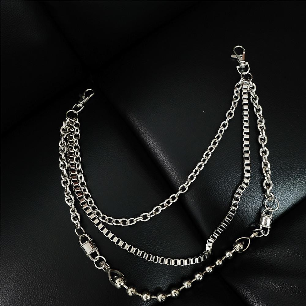 Style: Punk Men's Metal Beaded Triple Long Wallet Chain Pants Chain Trendy Biker Wallet Chain For Men