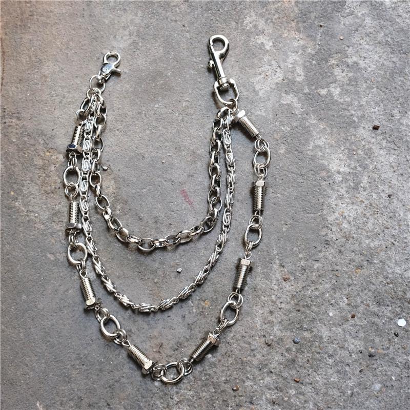 Design: Badass Men's Silver Triple screw bolt Pants Chain Wallet Chain For Men